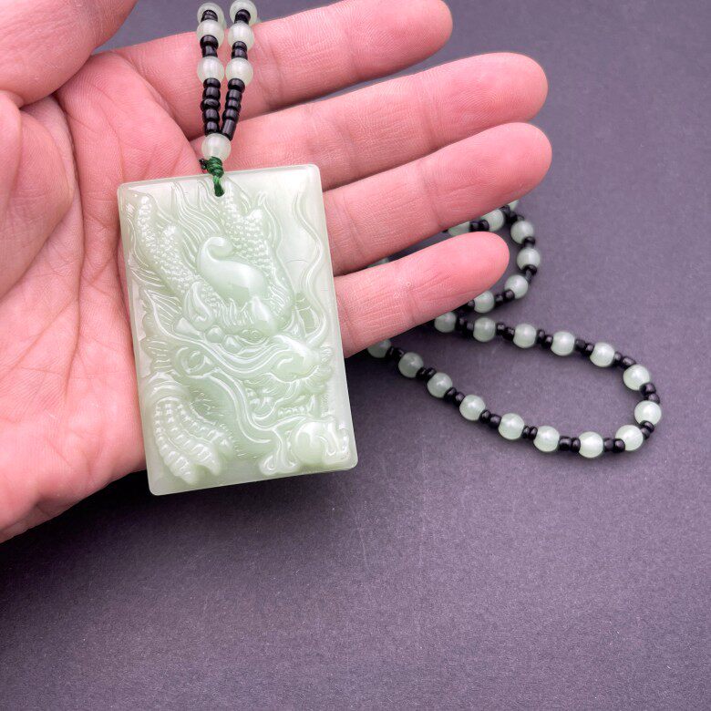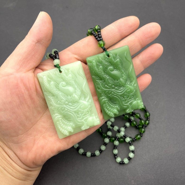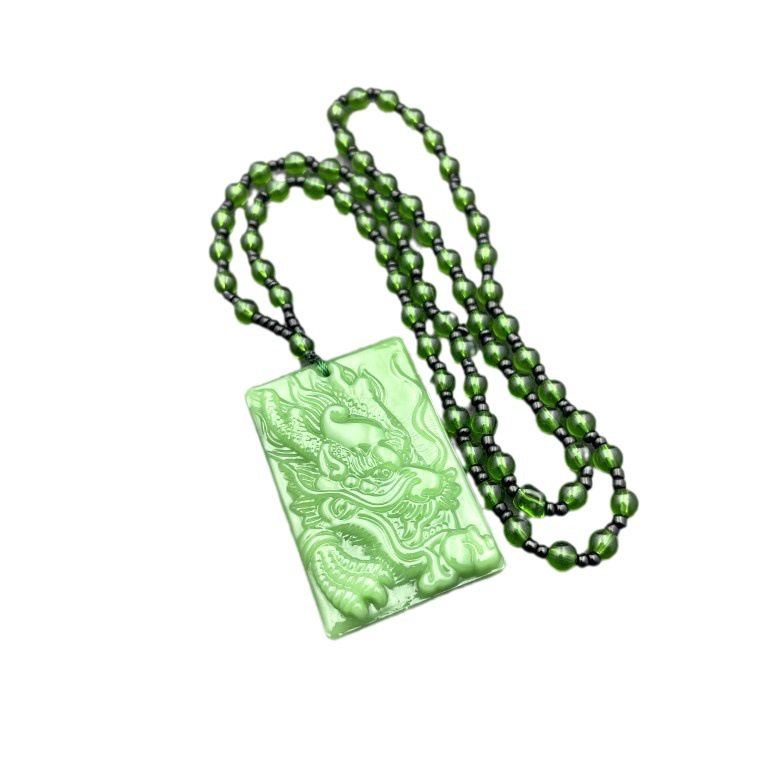 直播福利仿绿玉石绿色龙牌吊坠龙凤呈祥挂件仿白玉项链毛衣链景区