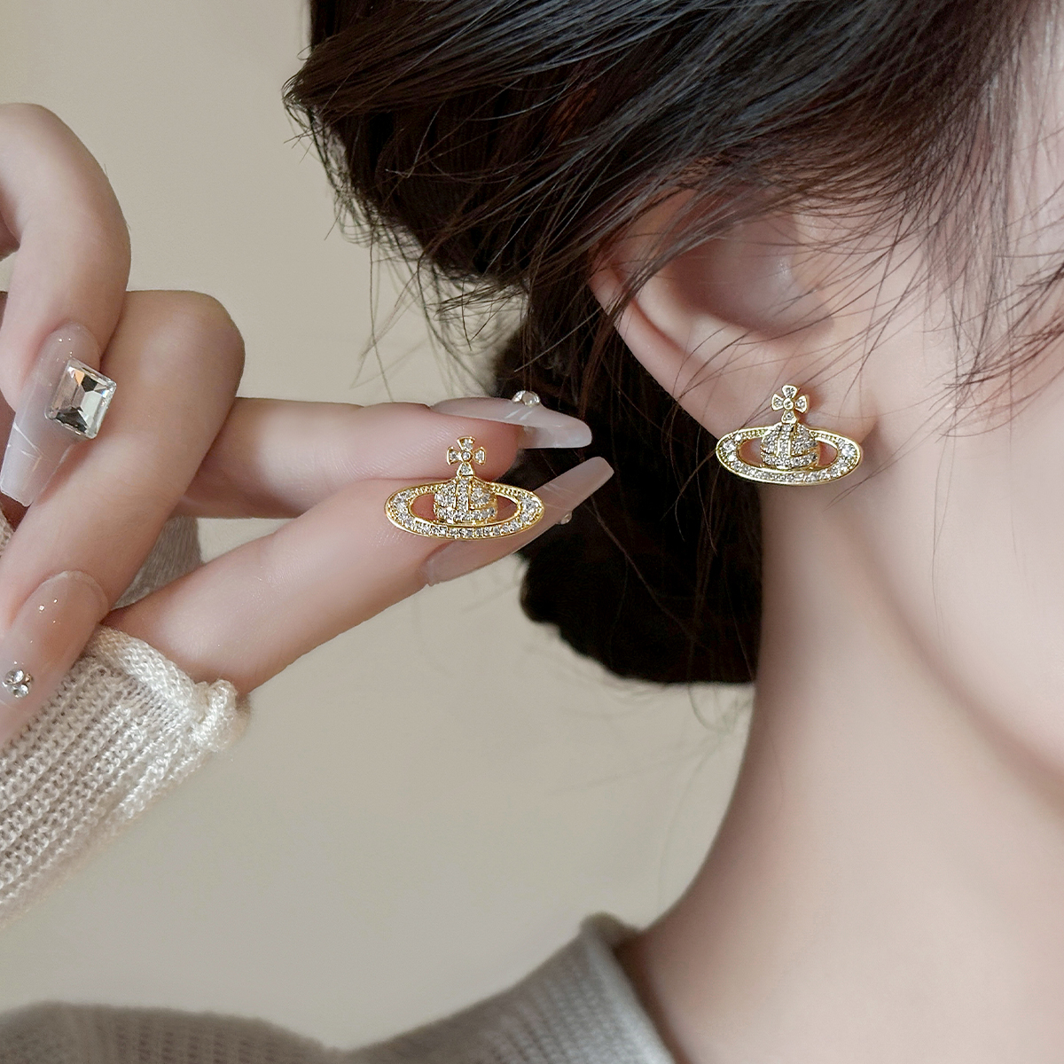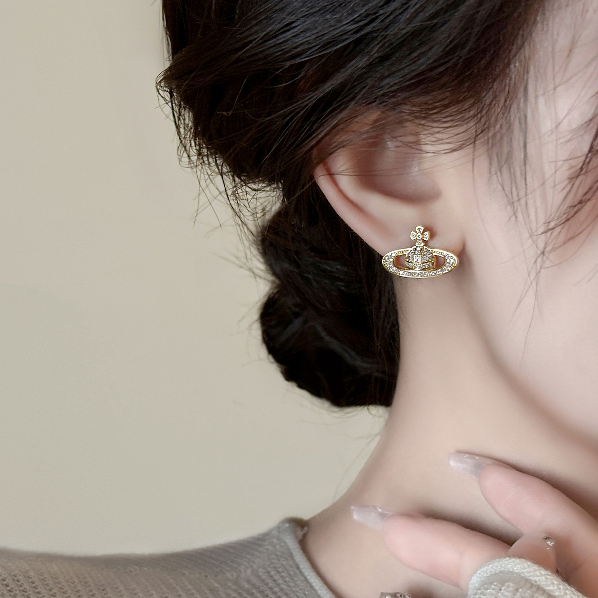 星球西皇后满钻纯银耳钉女精致设计感耳饰2025新款爆款高级感耳环