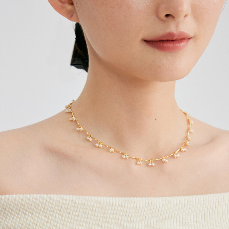 亮熙变奏曲花状小米珍珠项链女款小众设计轻奢高级感锁骨链