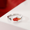 925纯银红色福运锦鲤戒指女小众设计高级感中国风开口可调节指环