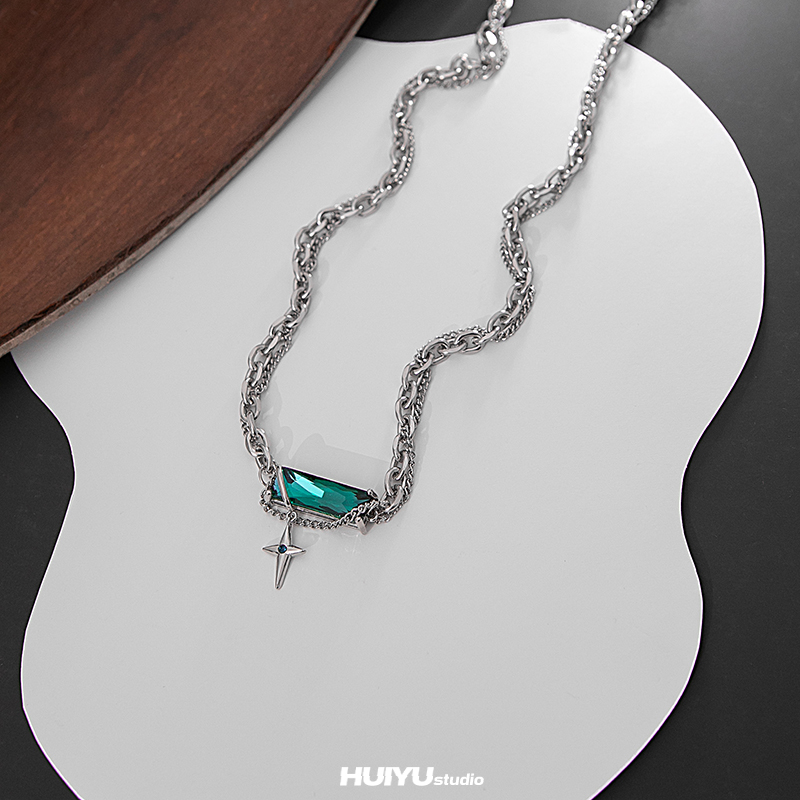 绿钻星芒吊坠项链男轻奢小众饰品配饰潮钛钢高级感设计日韩嘻哈风
