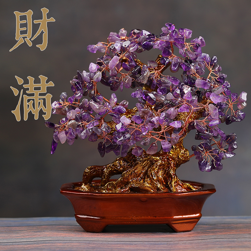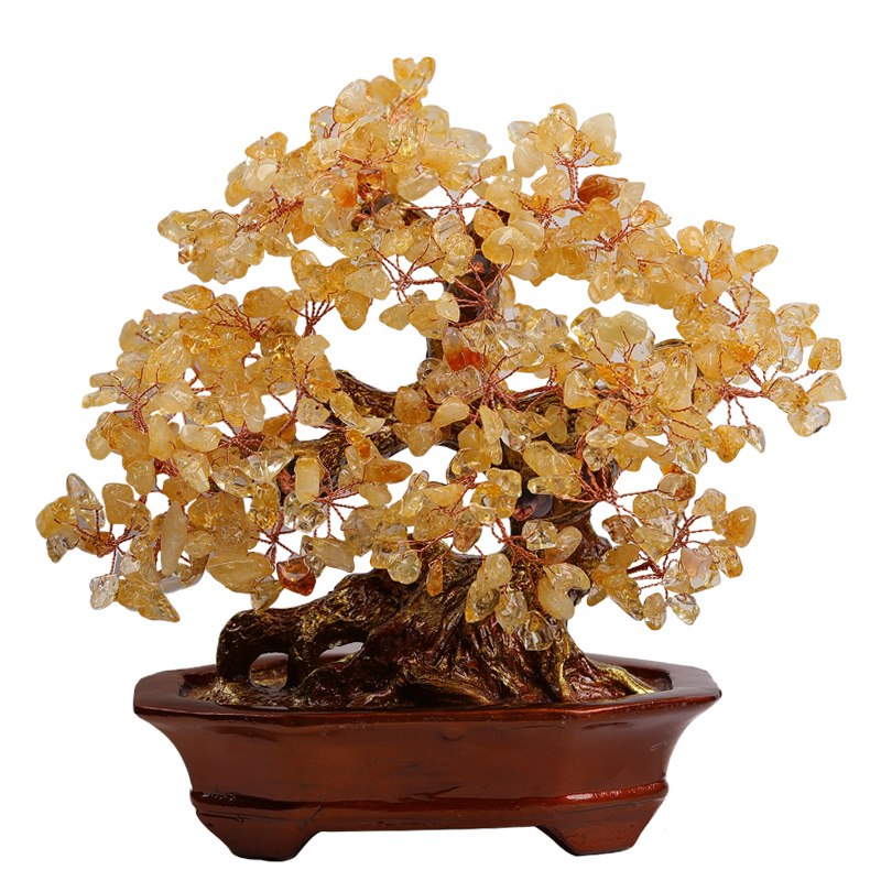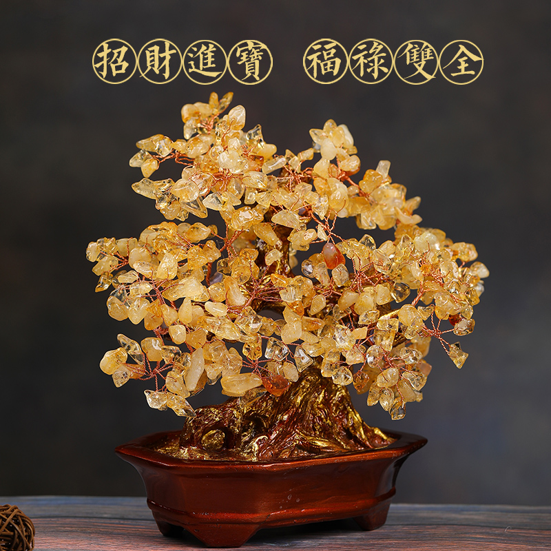黄水晶发财树招财摆件新年酒柜装饰家居客厅玄关小摇钱树开业礼品