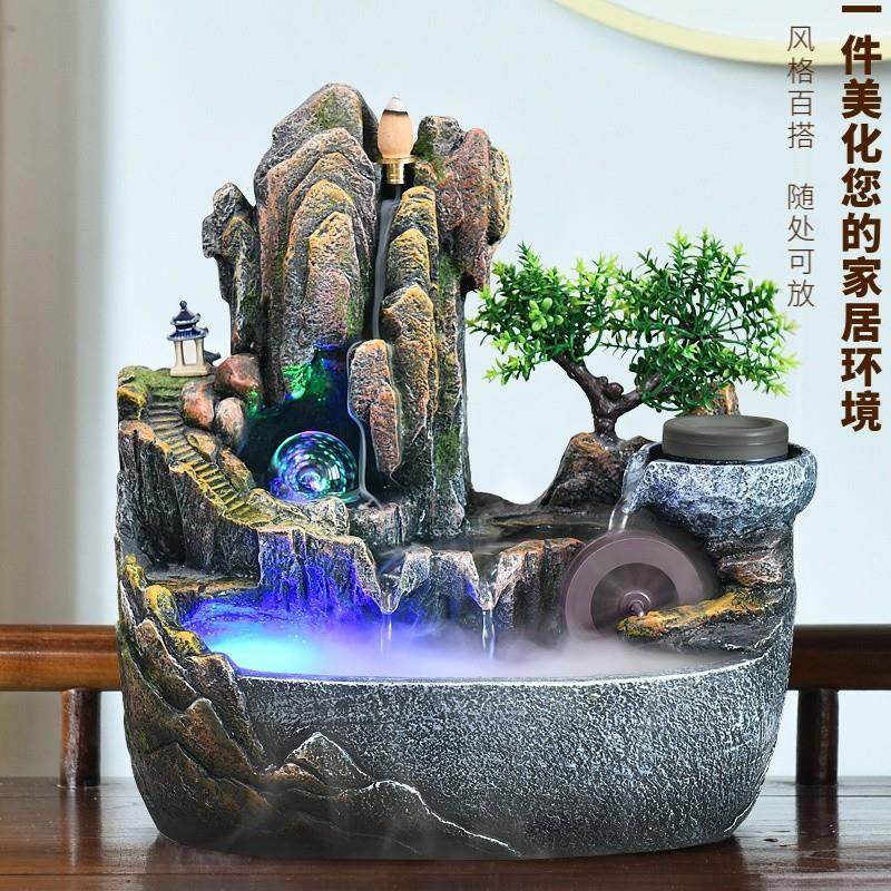 高山流水喷泉摆件客厅风水轮假山循环水景办公室加湿器倒流香鱼缸