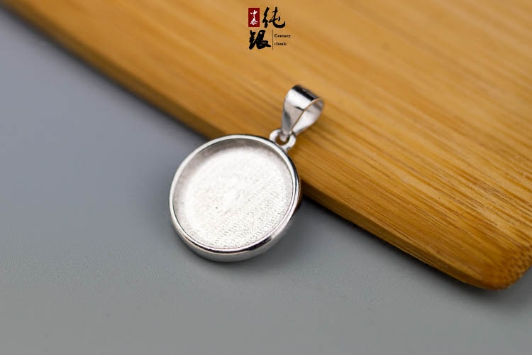 s925纯银圆封底吊坠空托银托琥珀蜜蜡月光镶嵌13*13 16*16 19*19