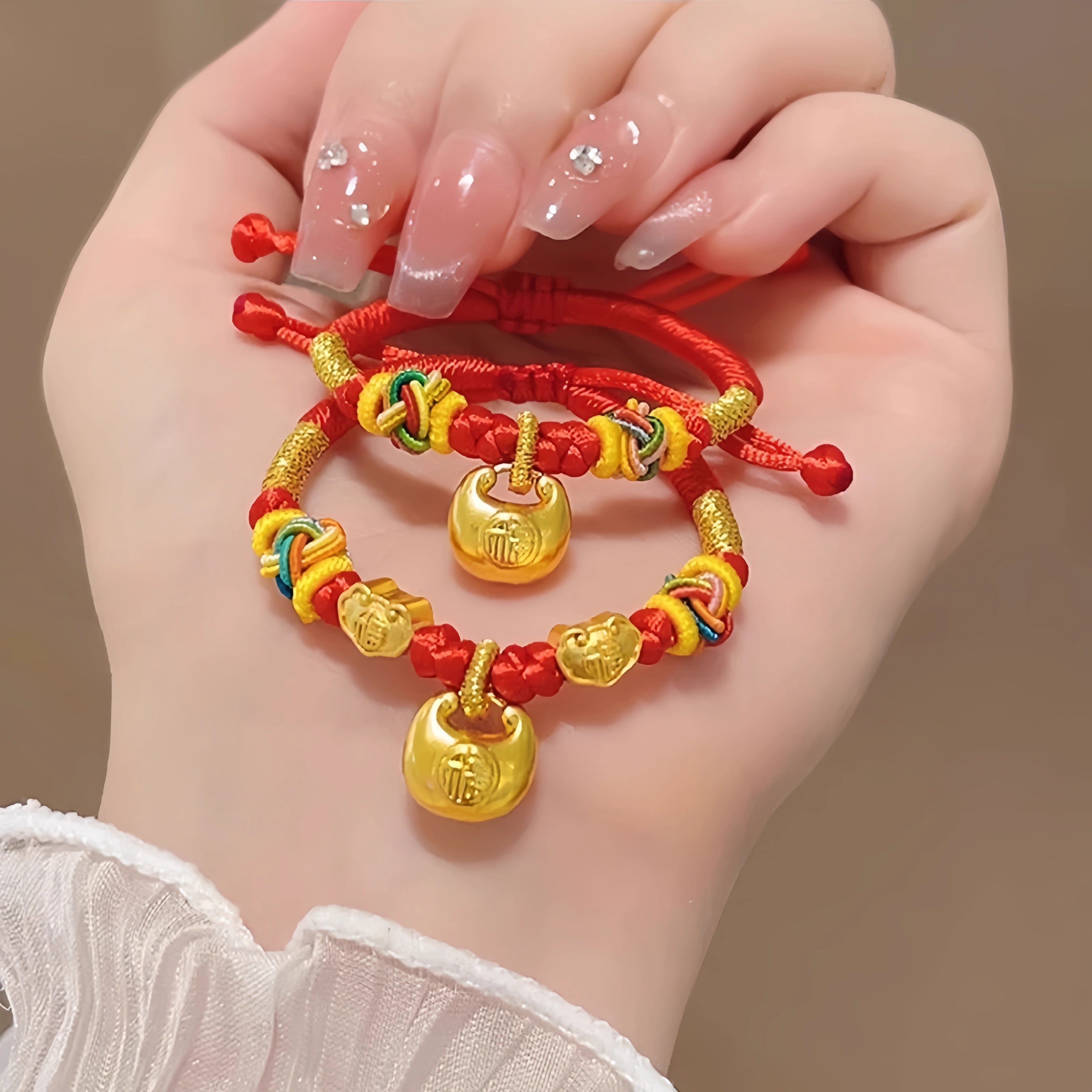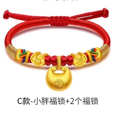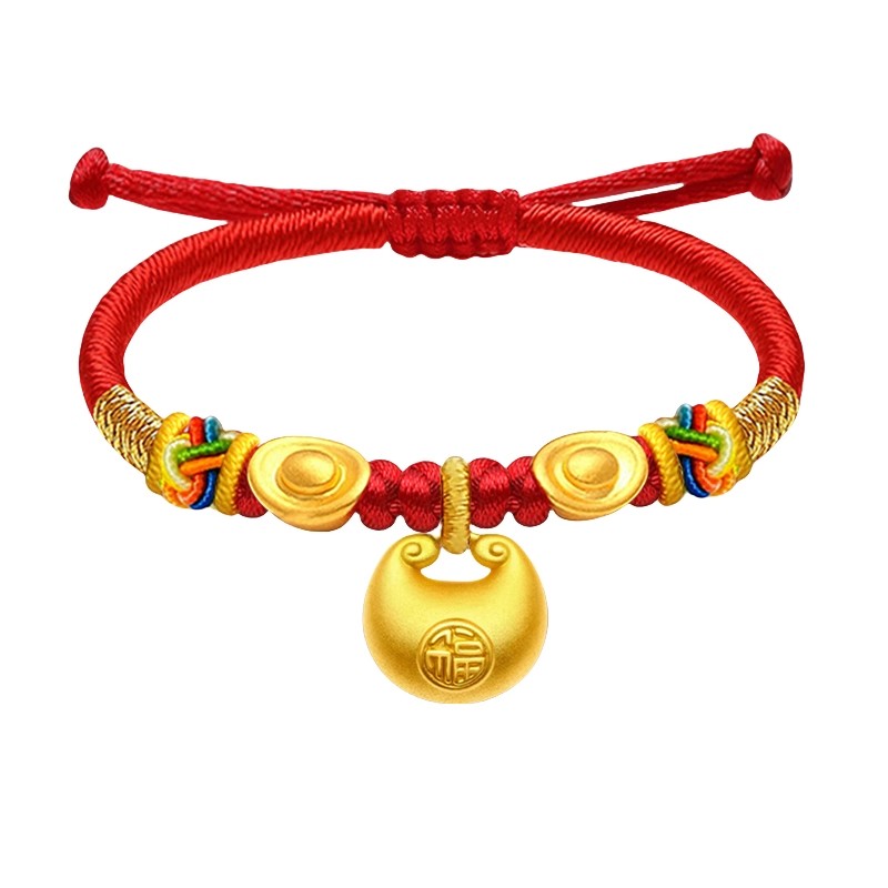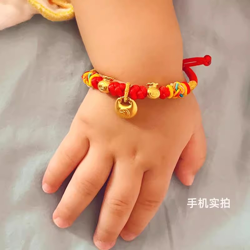 【深圳水贝】胖福锁金手链女宝宝吊坠金包银手串婴儿童红绳周岁礼