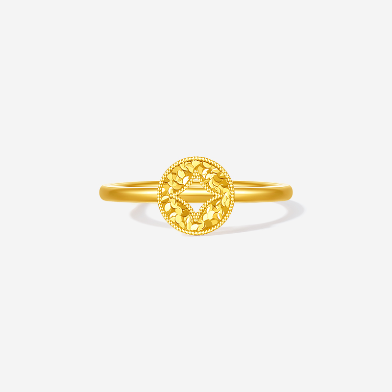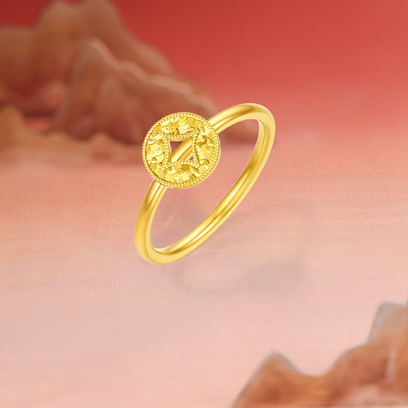 周六福5G足金戒指黄金计价招财进宝碎碎冰铜钱指环女戒圣诞礼物