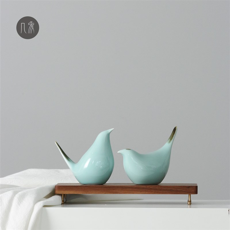 现代简约新中式陶瓷小鸟摆件根雕禅意创意茶几客厅动物装饰品桌面