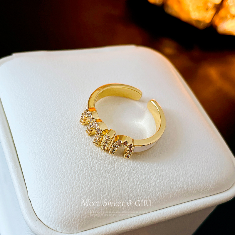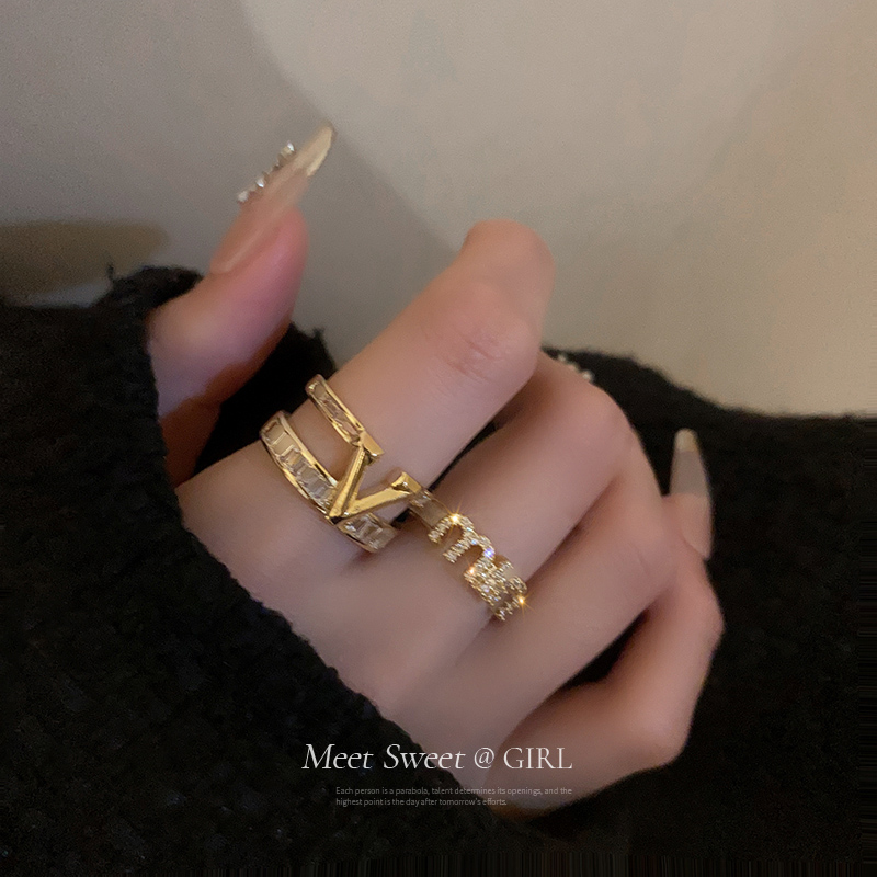 V字母锆石开口戒指女小众设计高级感食指戒轻奢气质尾戒个性指环