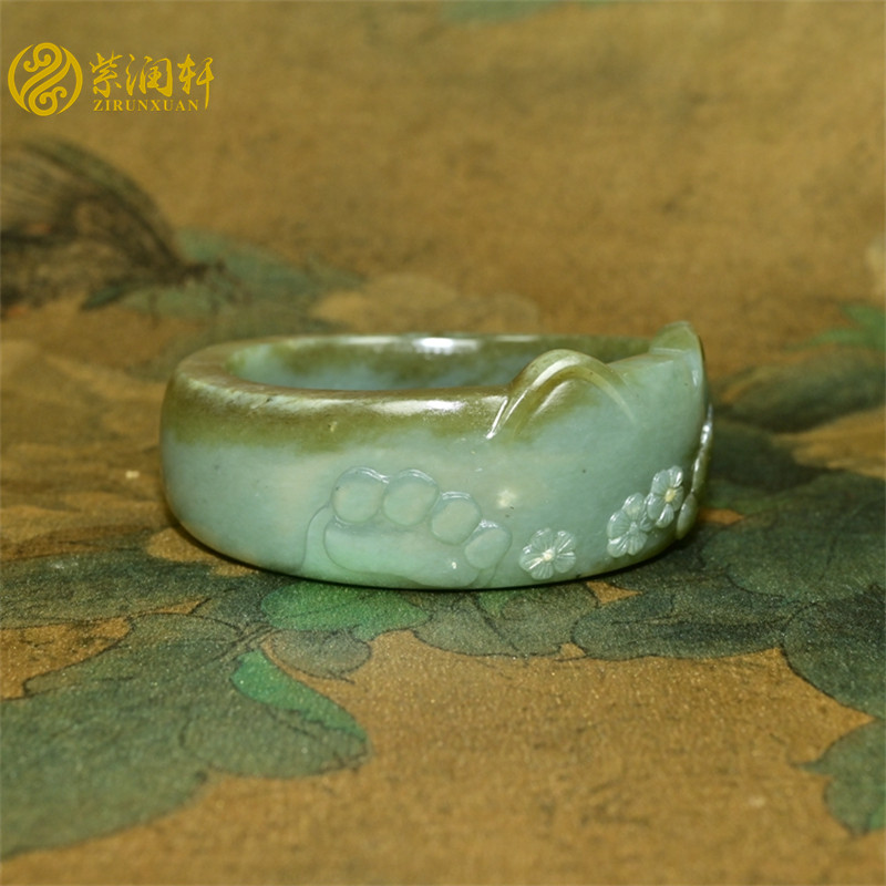 紫润轩新疆和田玉沙枣青籽料手镯猫猫镯飘糖随形梅花58MM玉镯精品