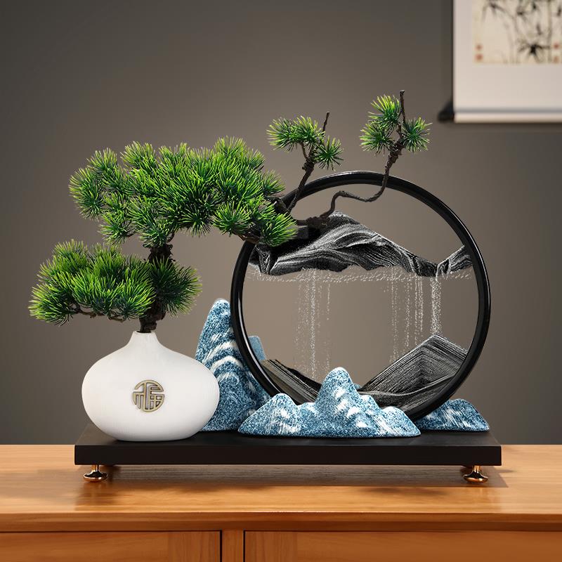 创意迎客松流沙画 画摆件沙漏新中式客厅禅意玄关办公室茶室软装