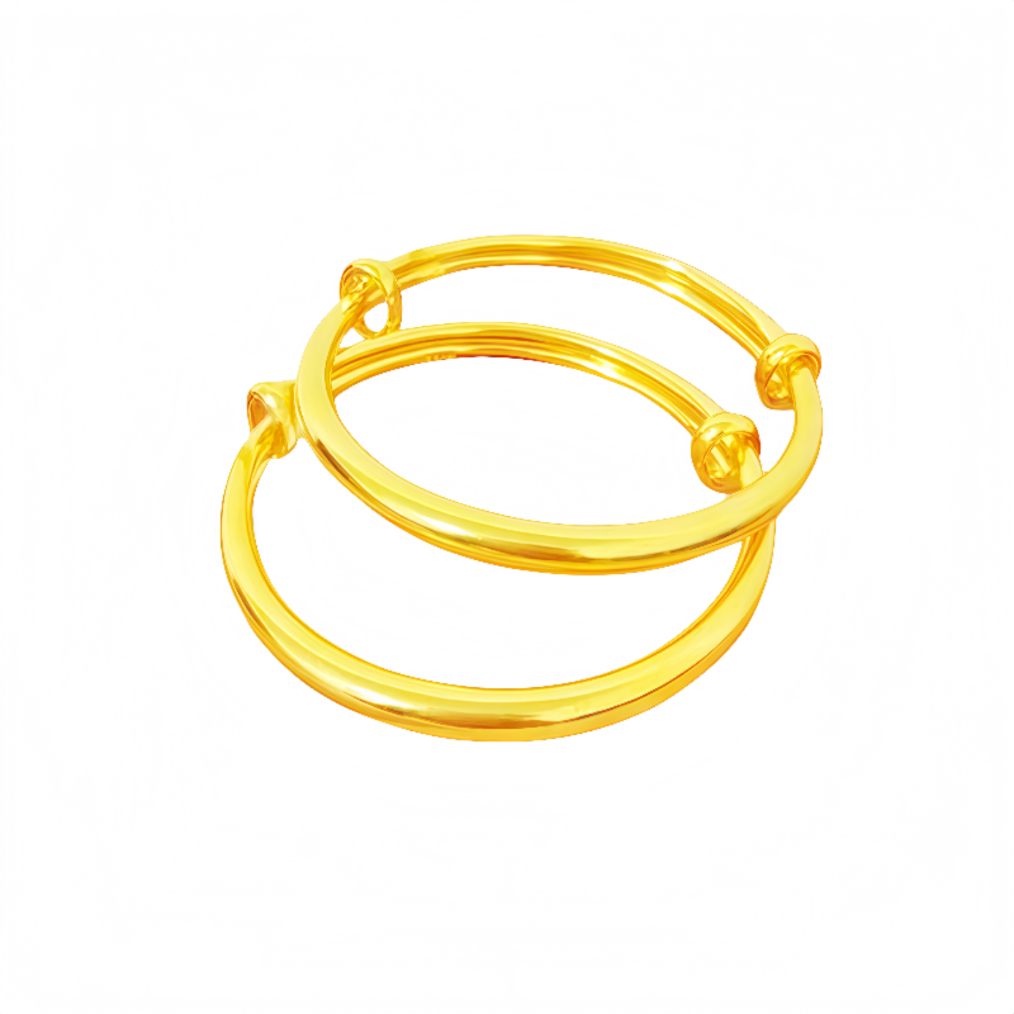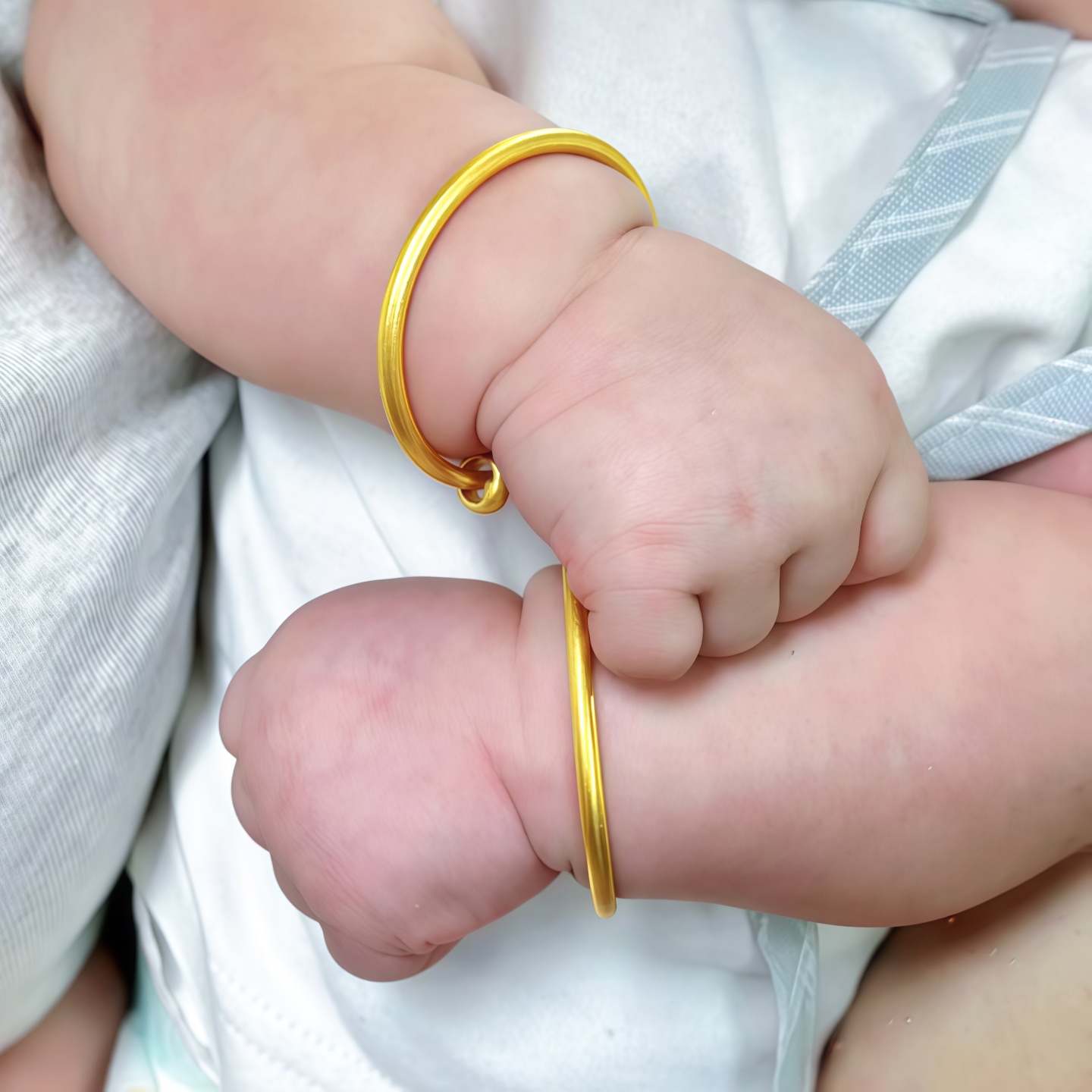 古法金包银素圈手镯实心推拉宝宝手环婴儿周岁礼儿童金镯子送礼物