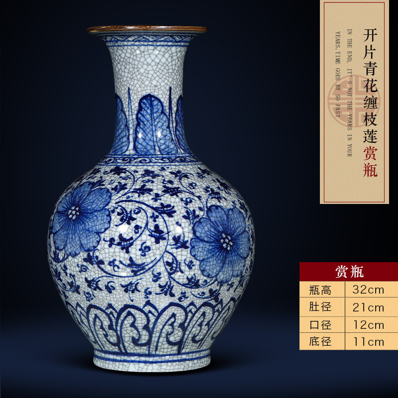 景德镇陶瓷器小花瓶摆件客厅插花干花中式家居装饰品工艺品电视柜