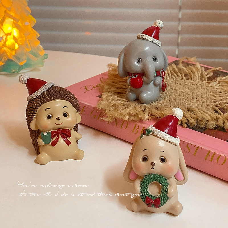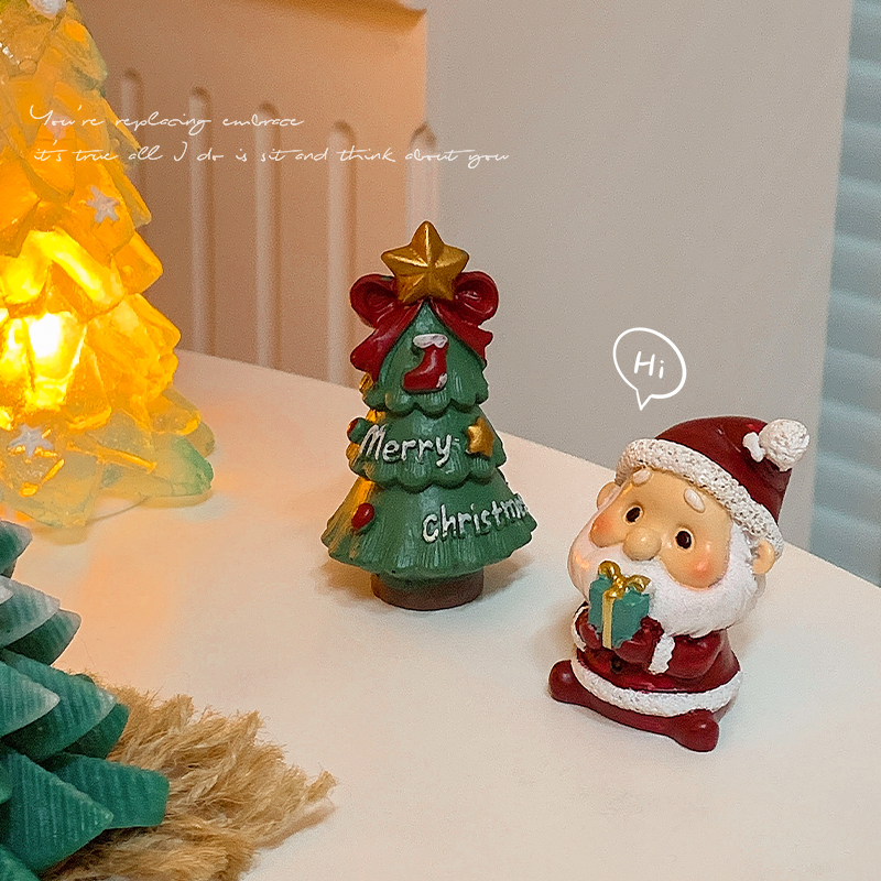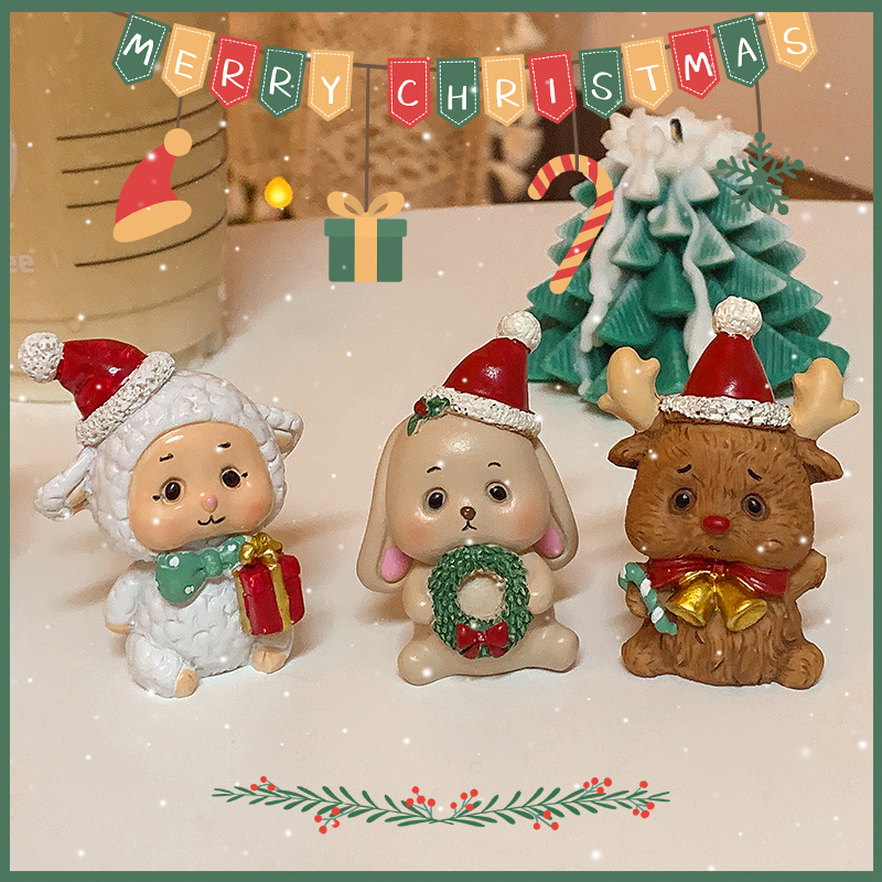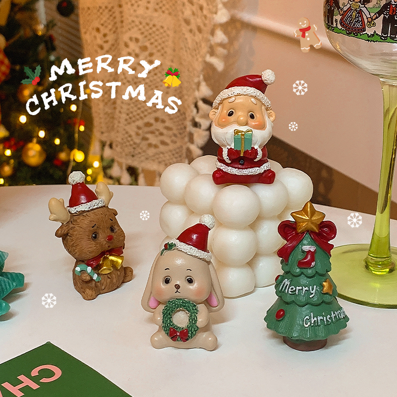 圣诞节主题桌面创意摆件树脂圣诞老人雪人小动物可爱迷你装饰礼物