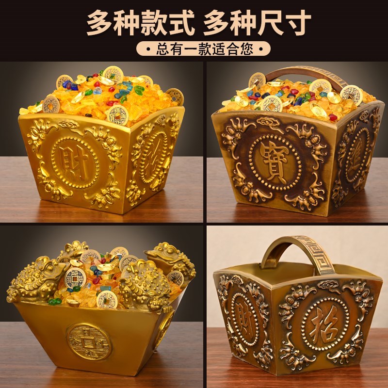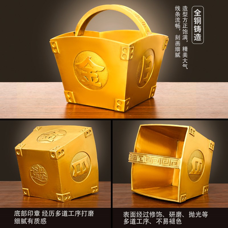 日进斗金摆件铜斗升子四方x纳福聚宝盆黄铜聚财米斗金斗金蟾斗