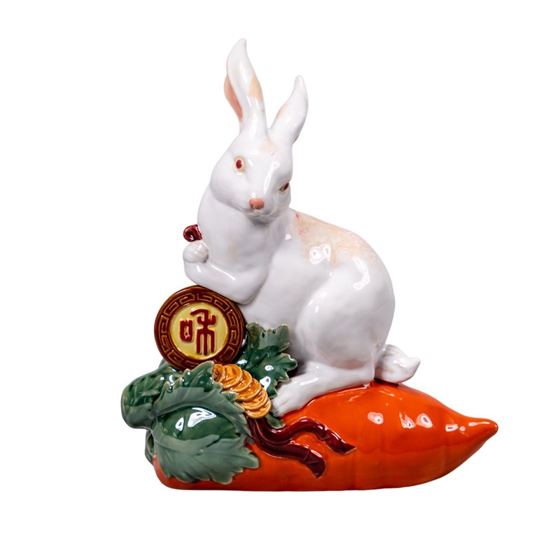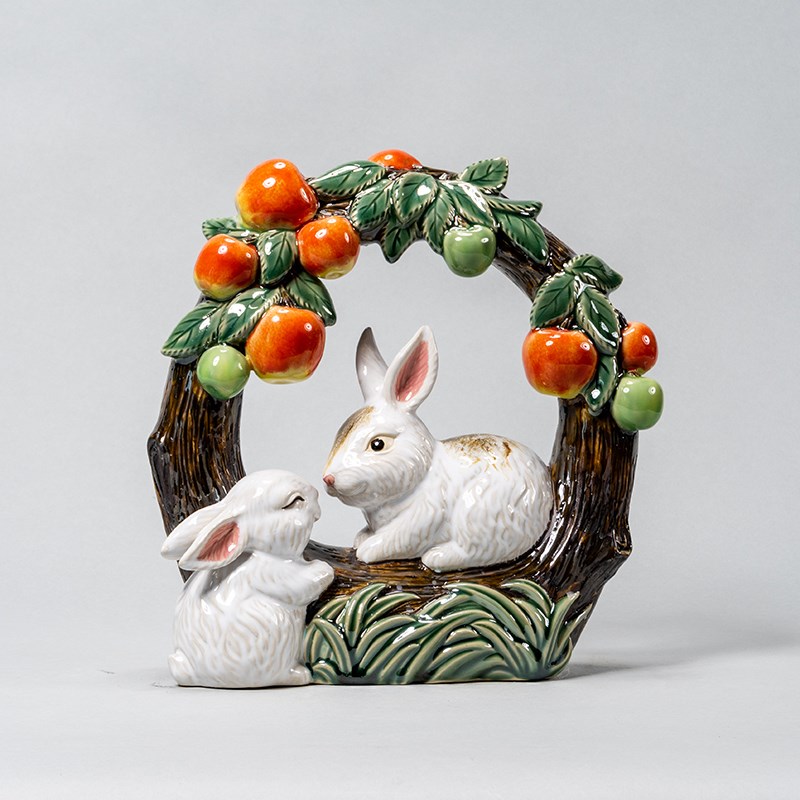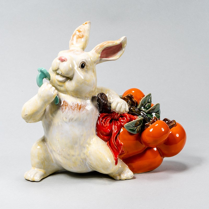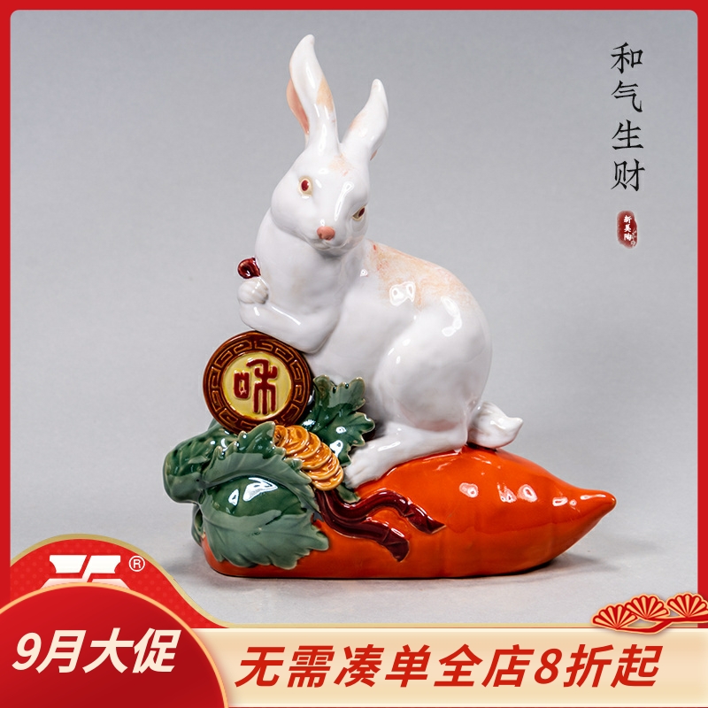 和气兔年新年春节家居客厅装饰摆件石湾公仔陶瓷全手工电视柜桌面