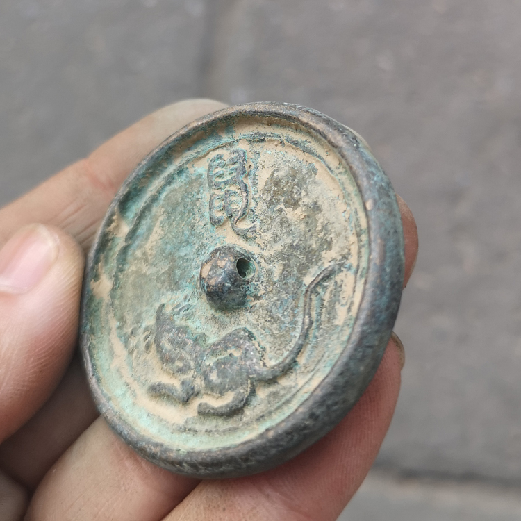 古玩杂项铜镜青铜器十二生肖老鼠铜镜纽扣镜老物件手把玩
