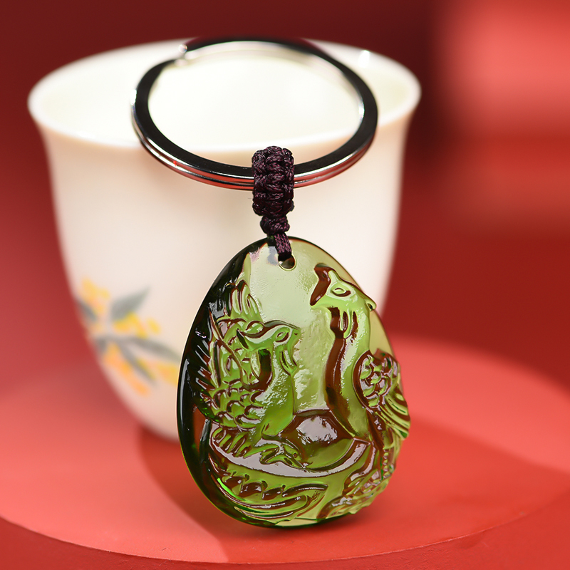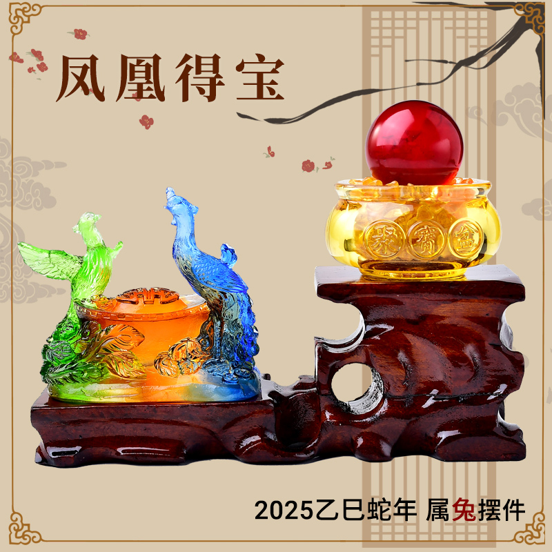 宋韶光2025蛇年属兔凤凰得宝琉璃吊坠生肖兔本命年挂件吉祥物男女