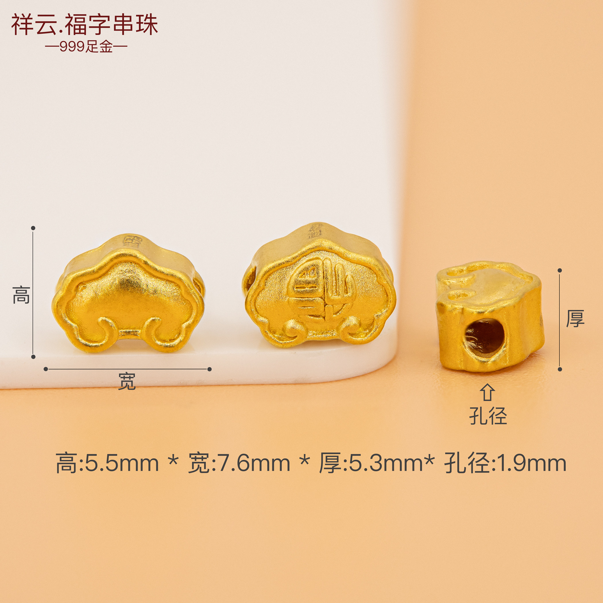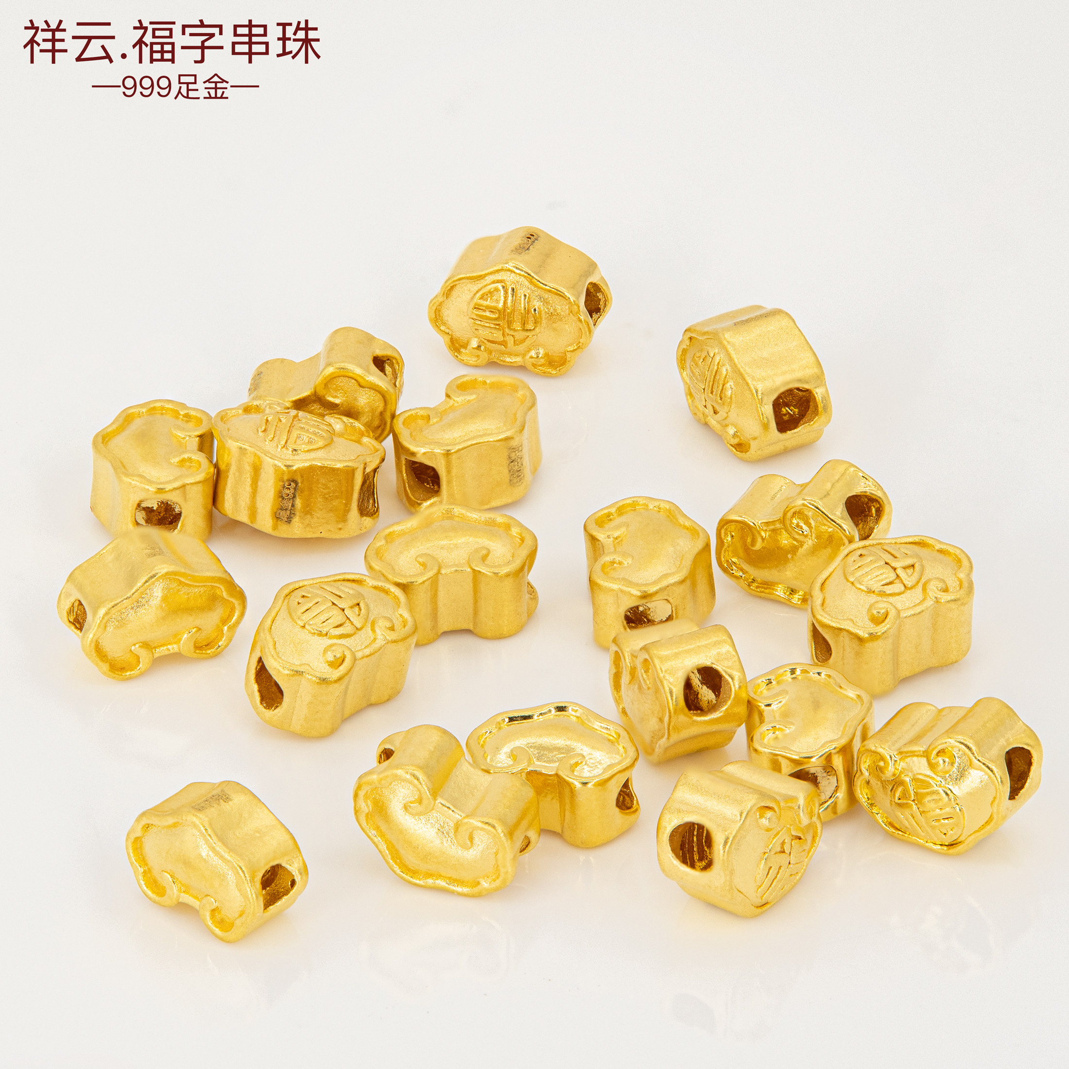 足金999配珠黄金小配件3D硬金福字串珠祥云隔珠diy手绳金珠手串珠