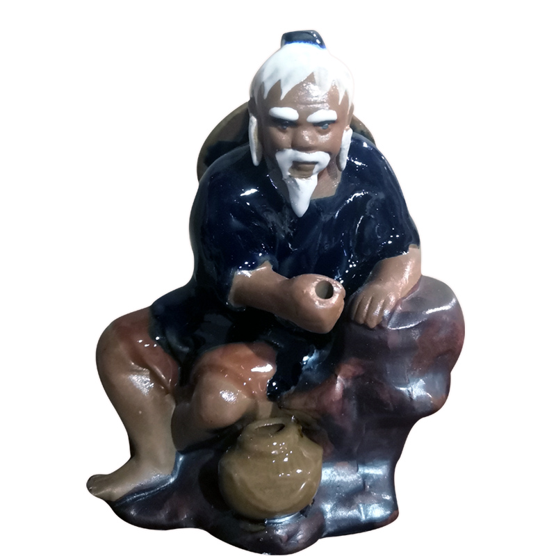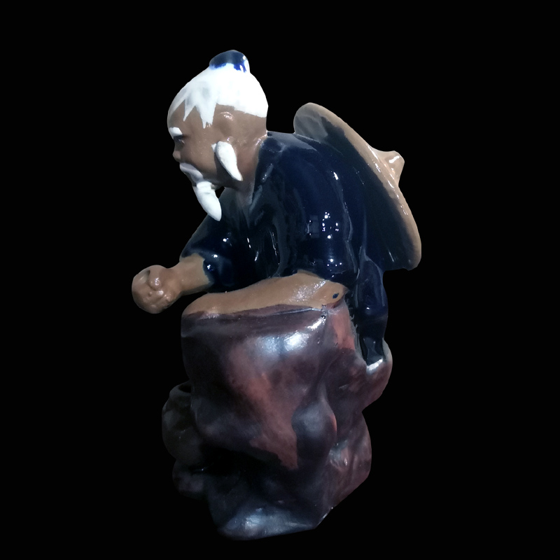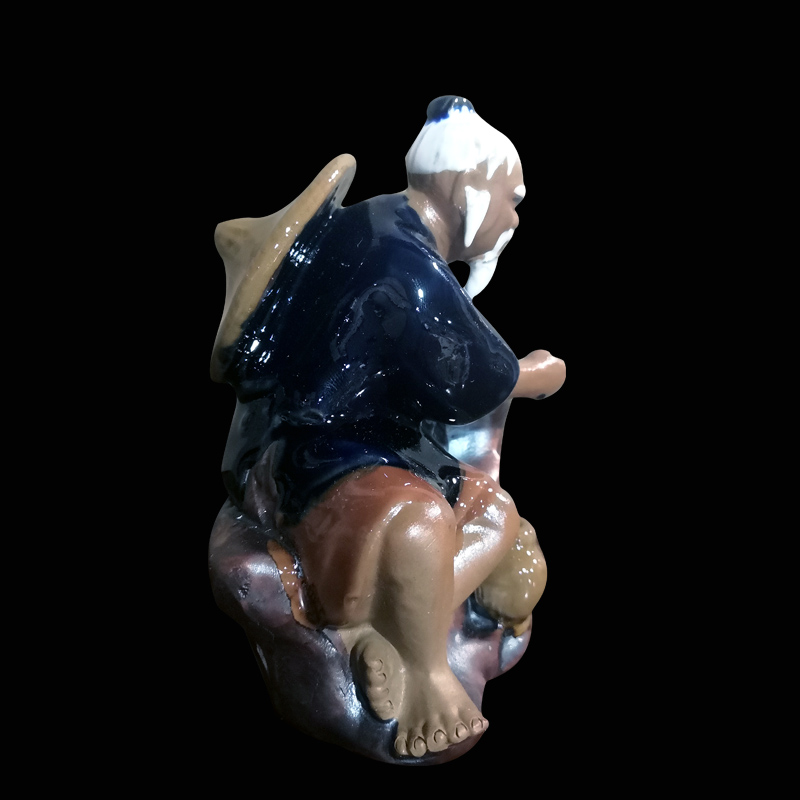 石湾公仔钓鱼家居陶瓷摆件假山山水鱼池配件鱼缸造景茶宠饰品摆设