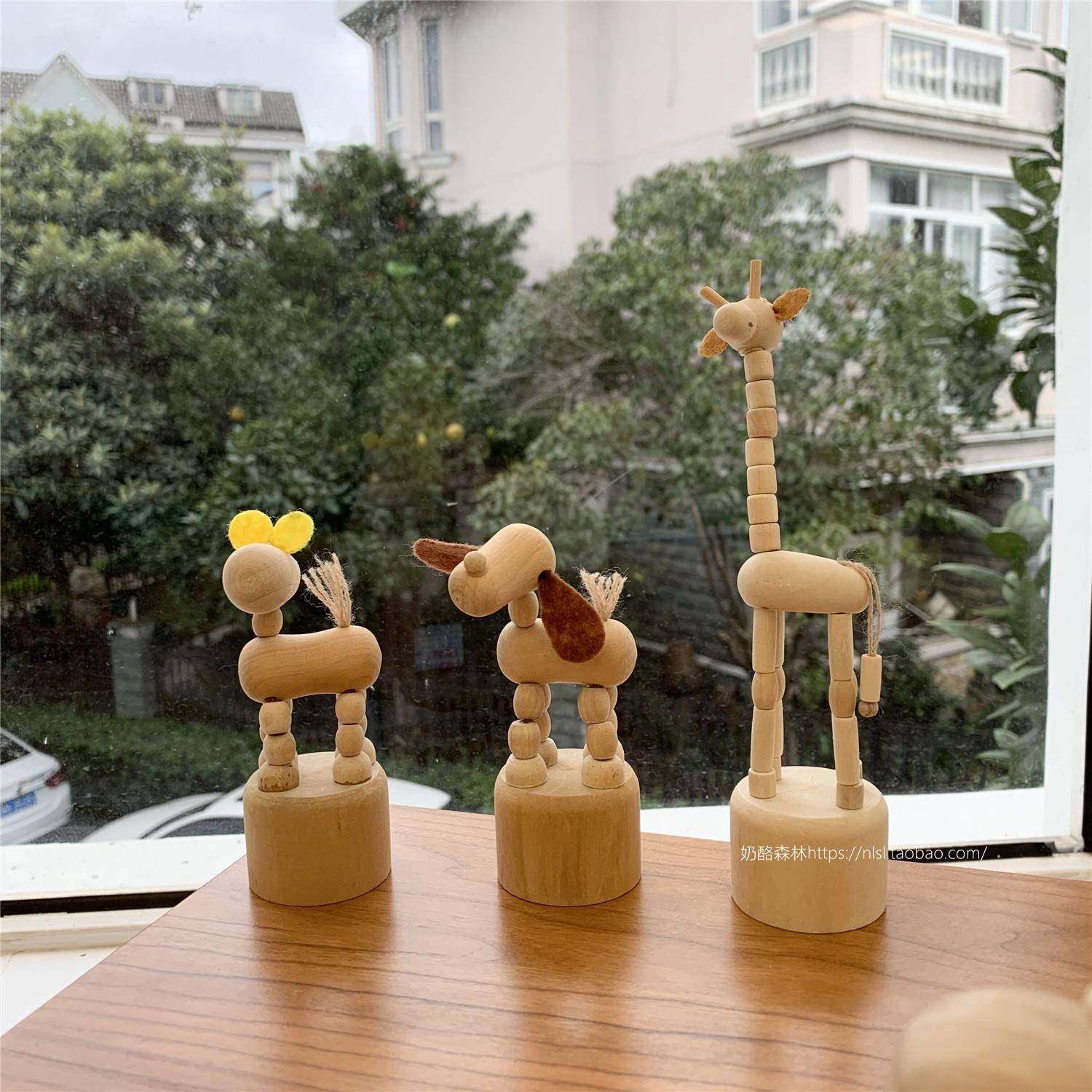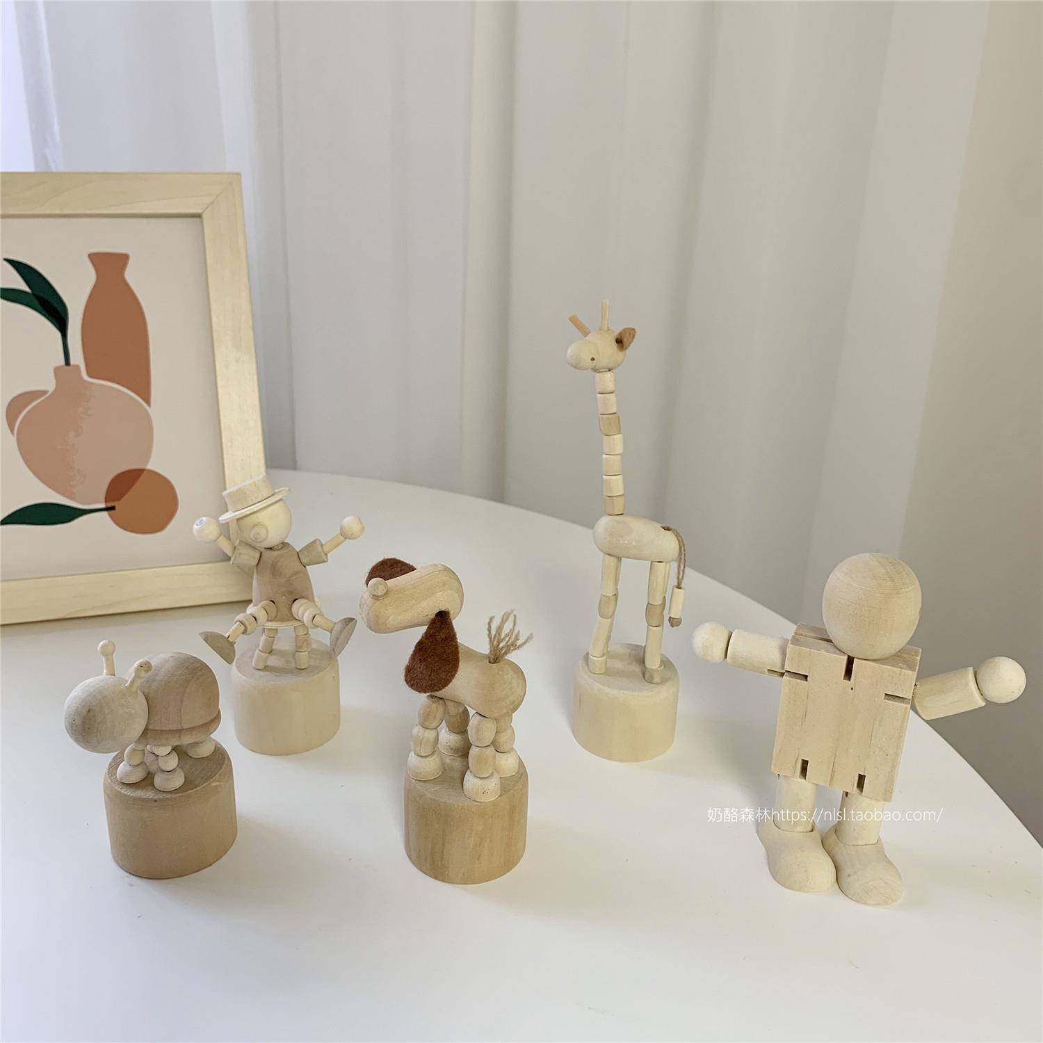 ins风桌面趣味动物小摆件木头人关节可调节桌面装饰拍照装饰背景