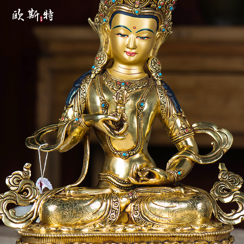 欧斯特金刚萨垛摆件尼泊尔手工铜鎏金10寸镶彩珠家居铜像金刚萨埵