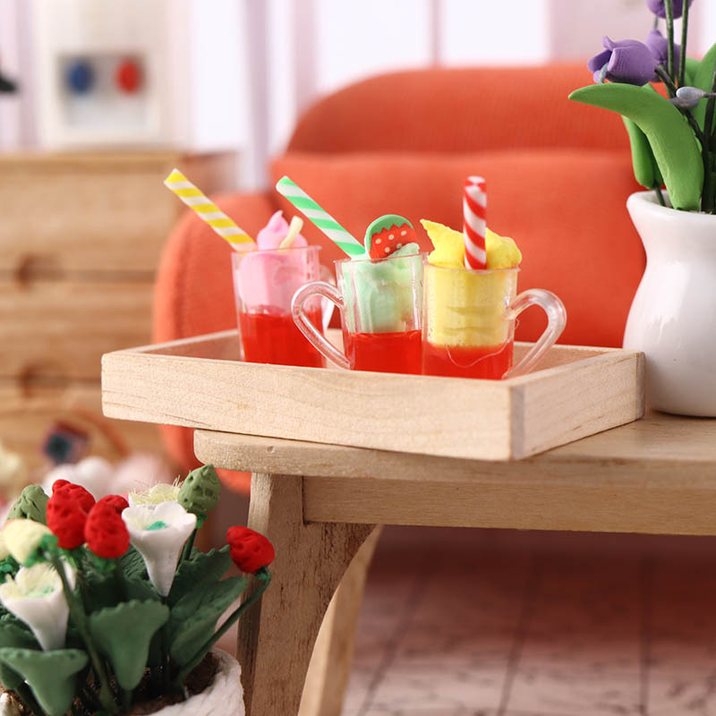 dollhouse微缩食玩1:12分西瓜汁雪糕杯迷你模型饮料杯袖珍场景diy