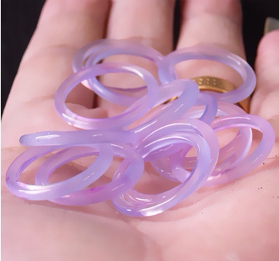 天然粉玉髓冰种芙蓉玉粉色戒指玉戒指手环 3mm紫色细条 玉器直销