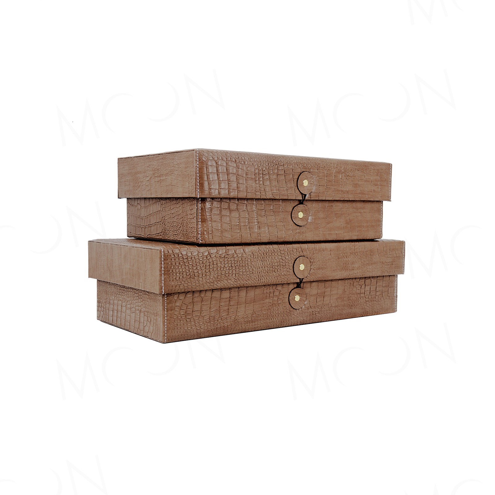 MOON慕空间现代样板间鳄纹信封箱棕色收纳盒衣帽间摆件软装装饰