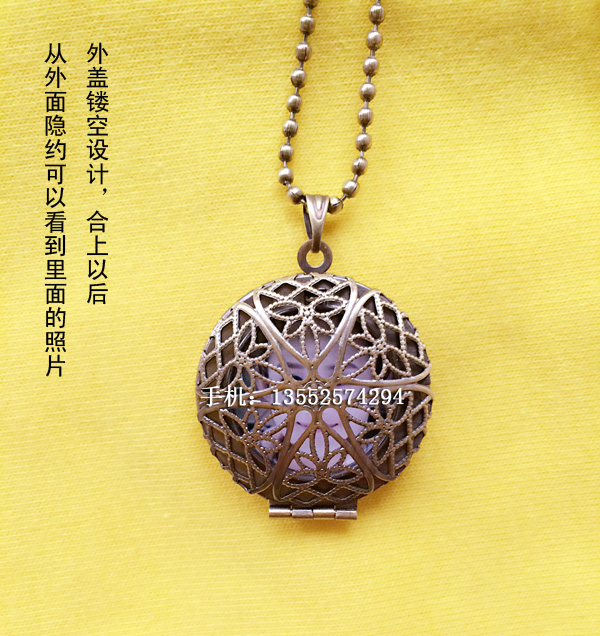 私人定制项链DIY放照片吊坠纯铜相盒情侣礼物长款毛衣链镂空圆形