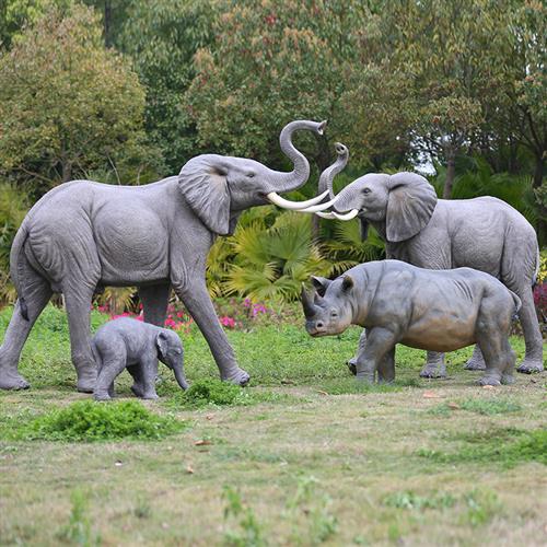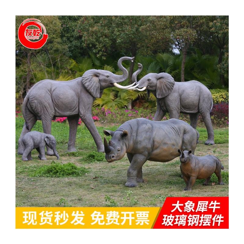 仿真大象犀牛玻璃钢大型动物雕塑户外园林景观庭院落地摆件装饰品