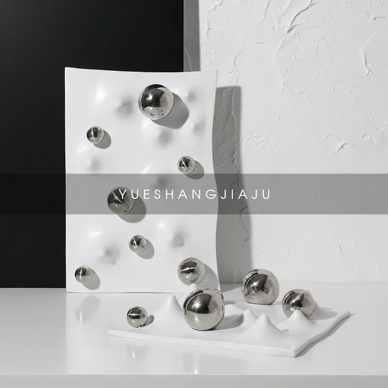 极速现代轻奢金属圆球艺术摆件客厅玄关柜样板Q间会议室桌面软装