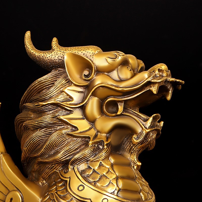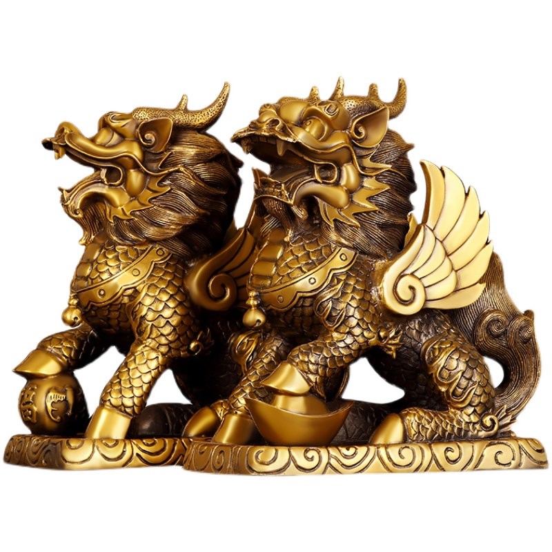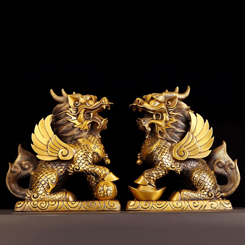 铜麒麟摆件一对纯铜大号祥瑞麒麟B门店桌面公母送子麒麟大号火麒