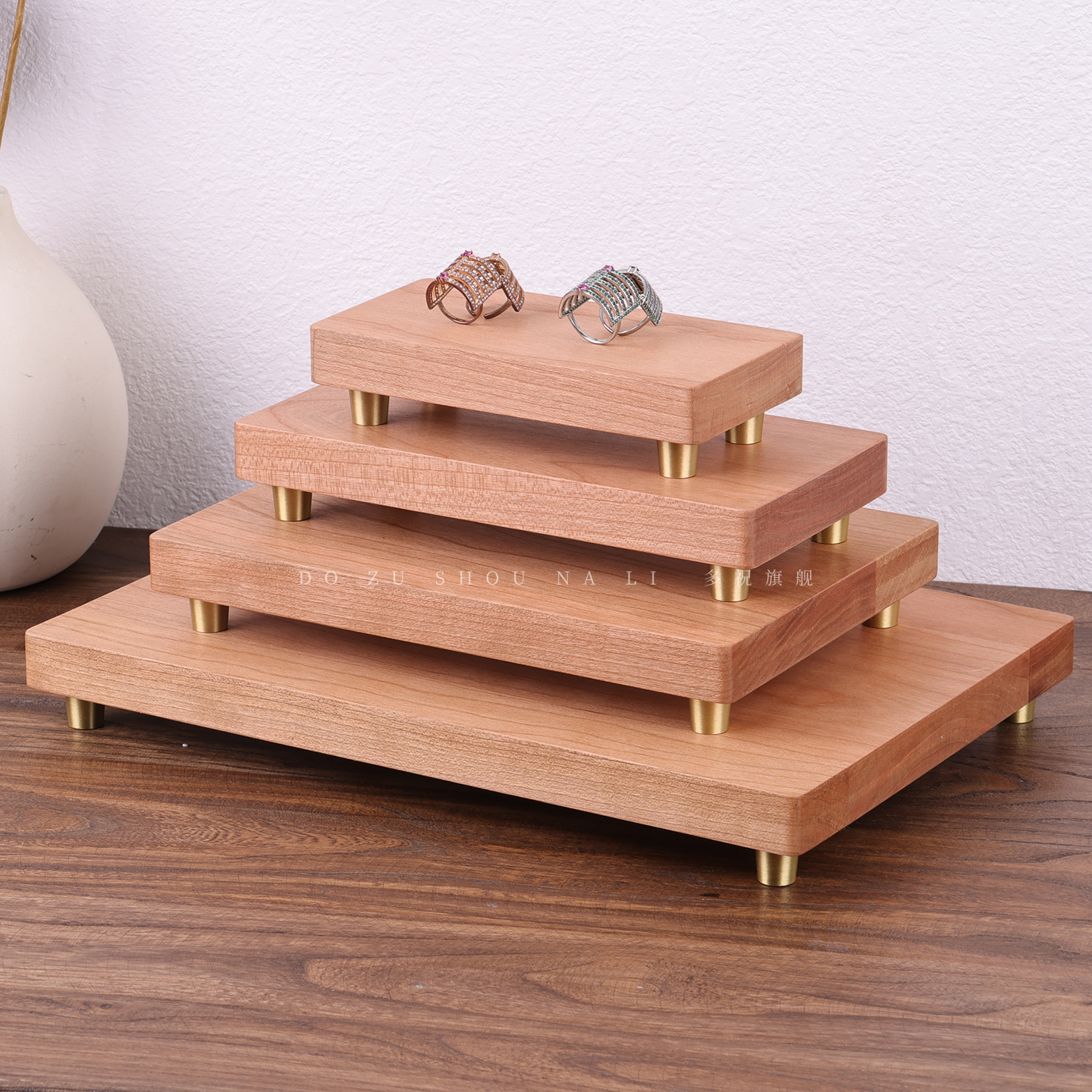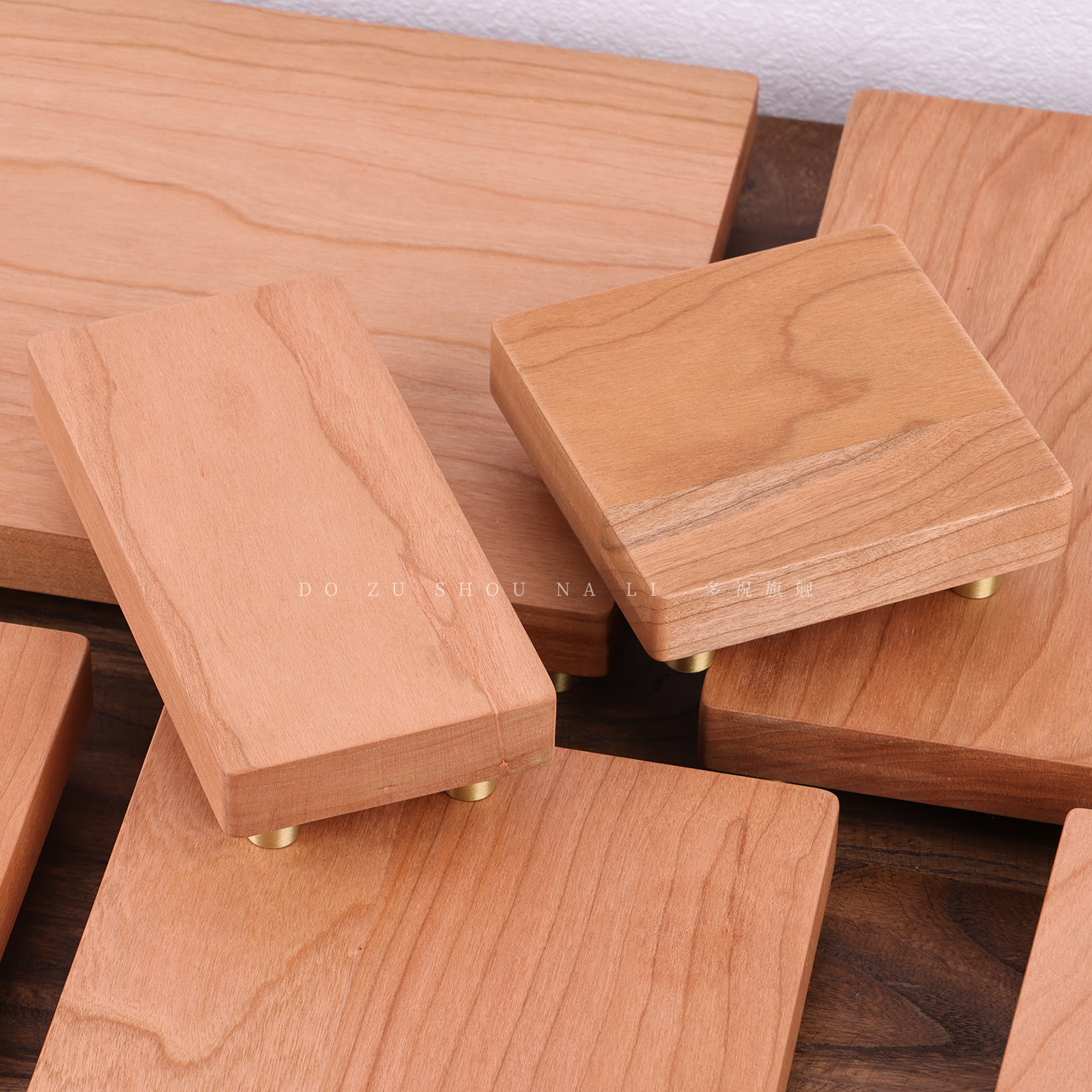 樱桃木底座实木木质摆件手办公仔桌面收纳工艺品柜台阶梯展示陈列