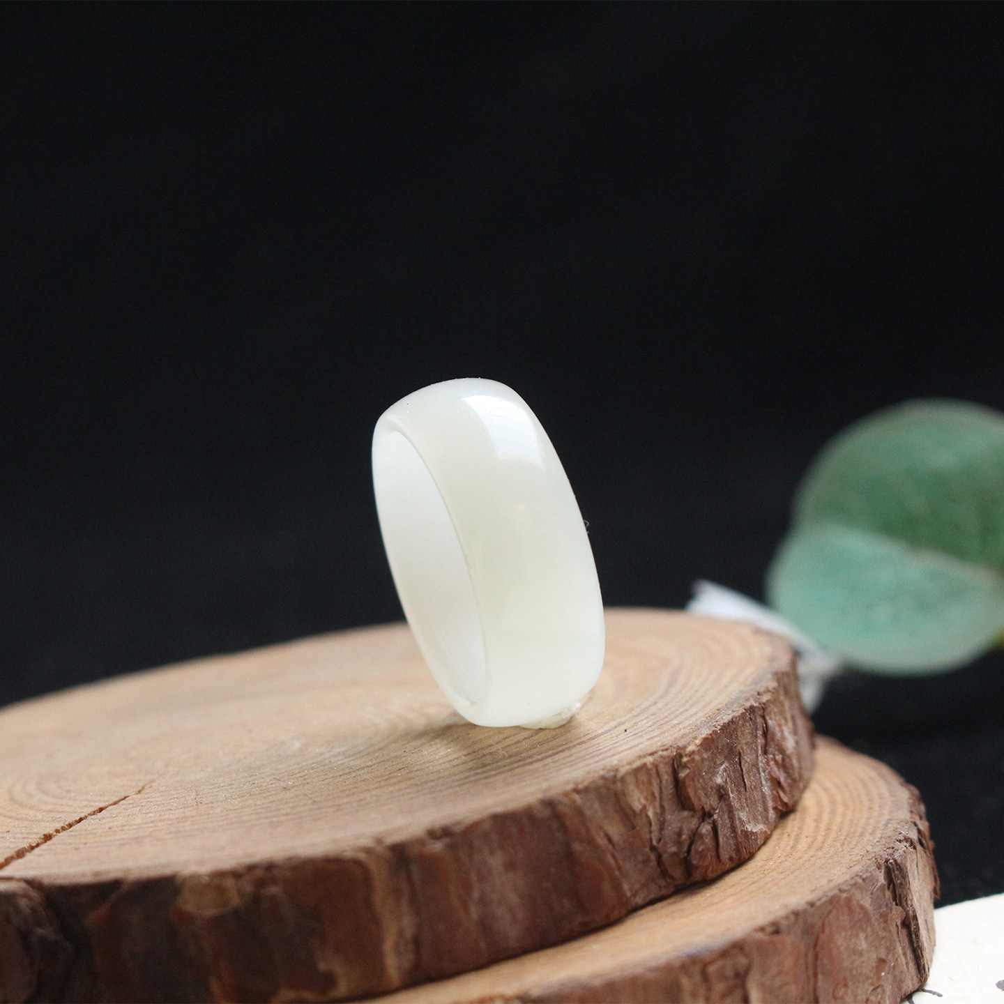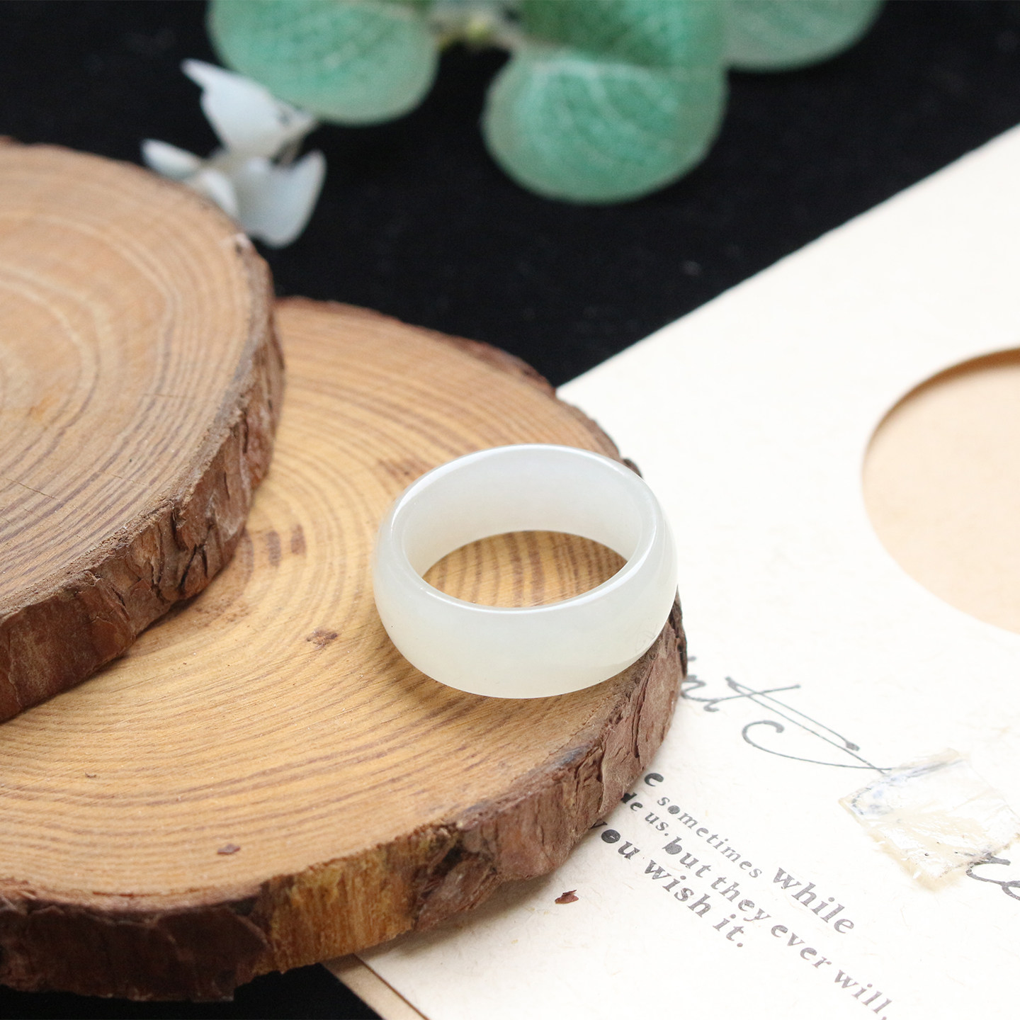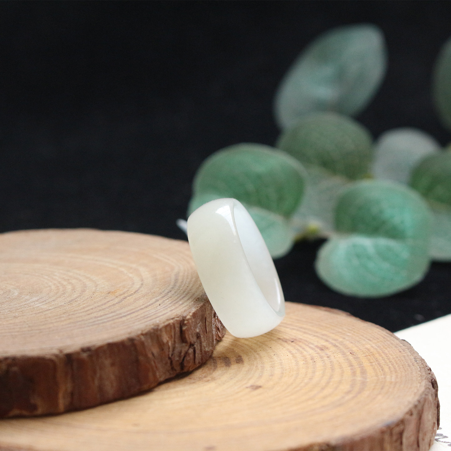 和田玉羊脂白玉戒指圆形泥鳅背指环男女款简约时尚19mm可定制玉戒