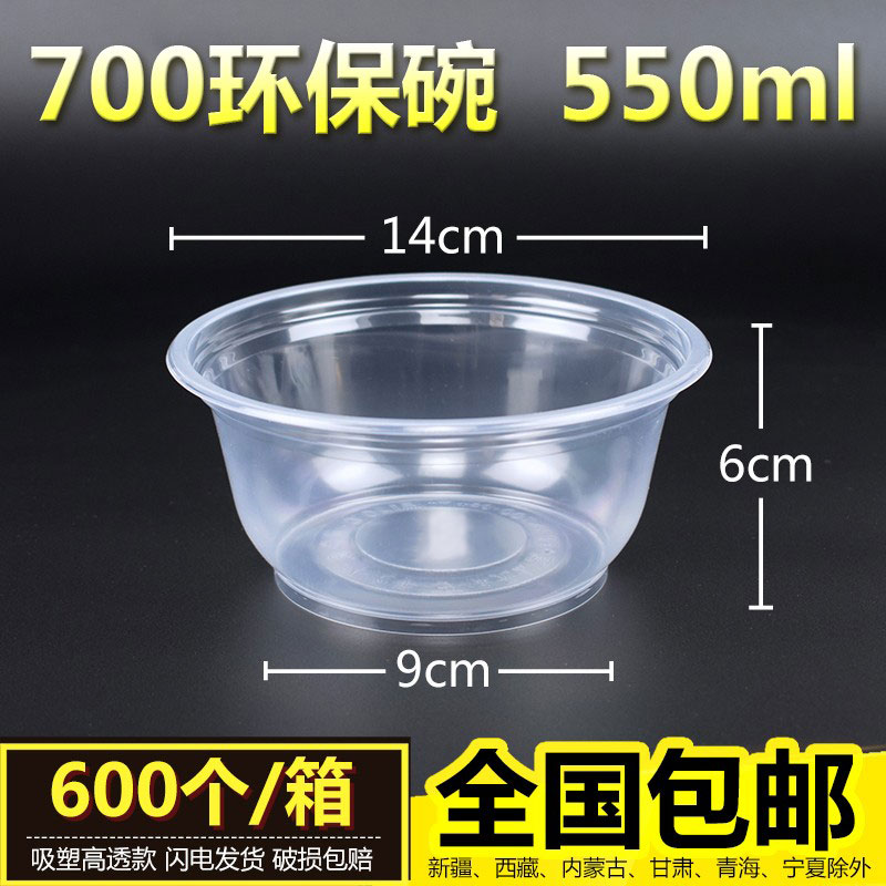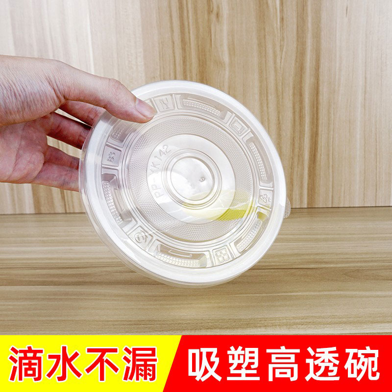 一次性碗圆形透明塑料碗带盖商用700环保快餐冰粉凉面外卖打包碗
