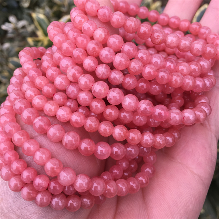 阿根廷天然冰种红纹石手串女 桃花手链粉晶粉水晶珠子手链单圈
