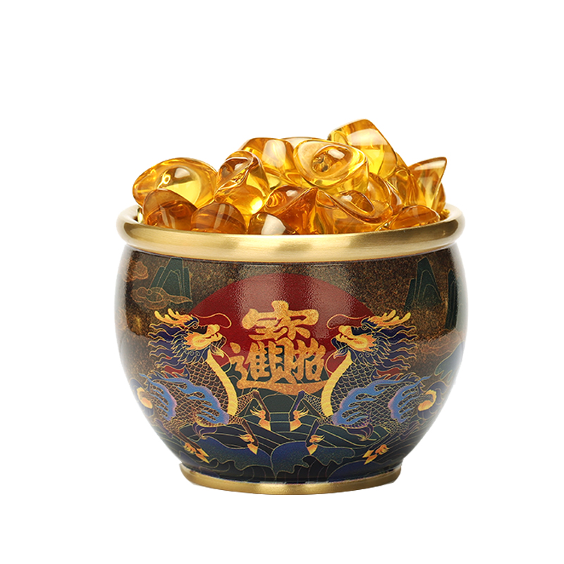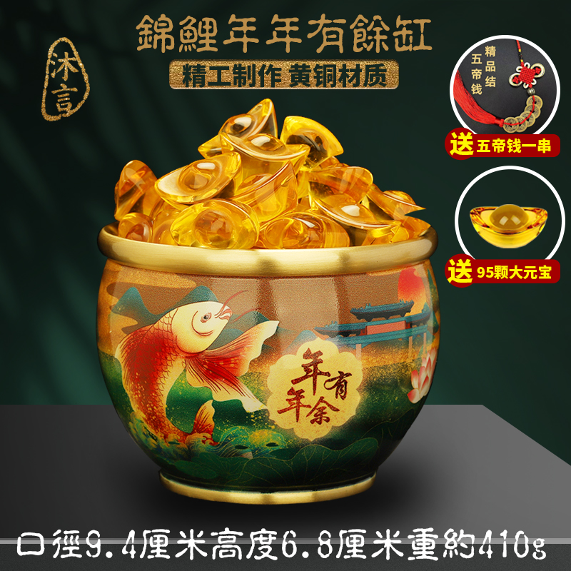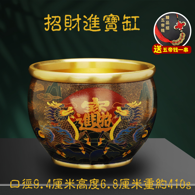 黄铜百福缸家居吉祥招财进宝米缸聚宝盆装饰品存钱罐铜富缸摆件