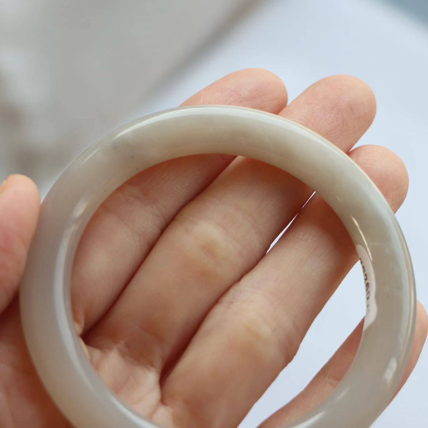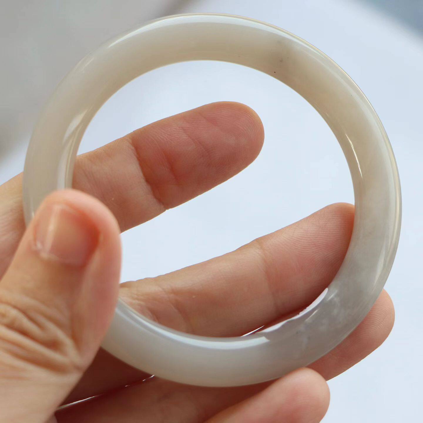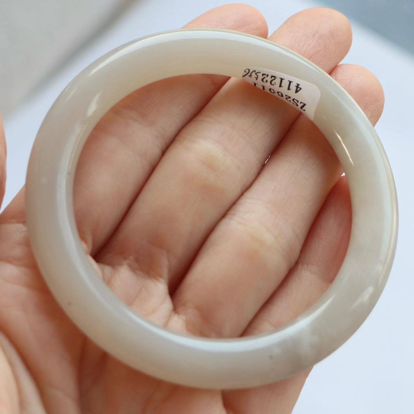 保真天然和田玉手镯53圈口证1141122和田玉藕粉烟灰色 青海料圆条