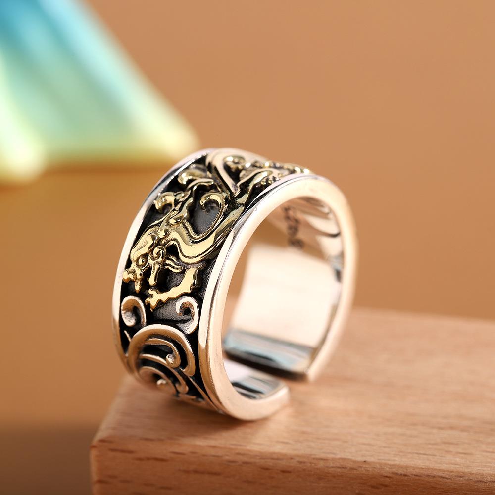 本命年复古精工925银龙戒指开口个性风潮男士嘻哈风做旧指环礼物