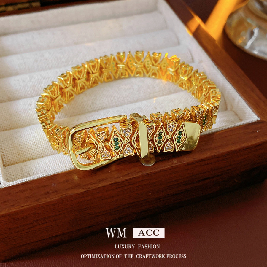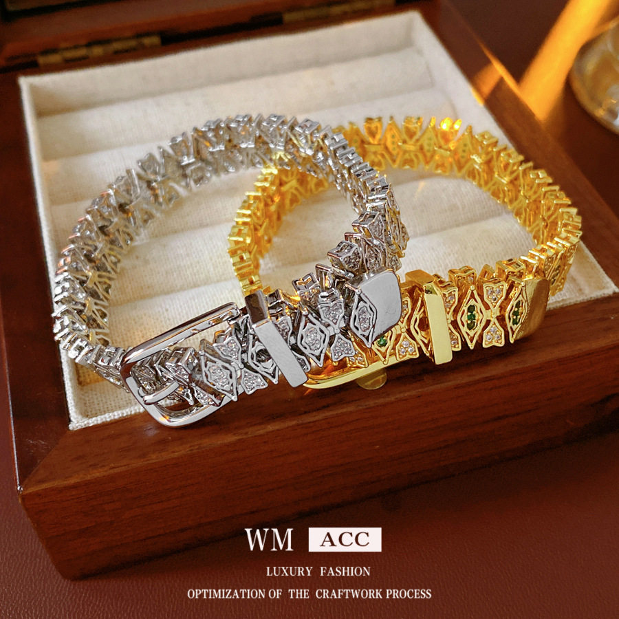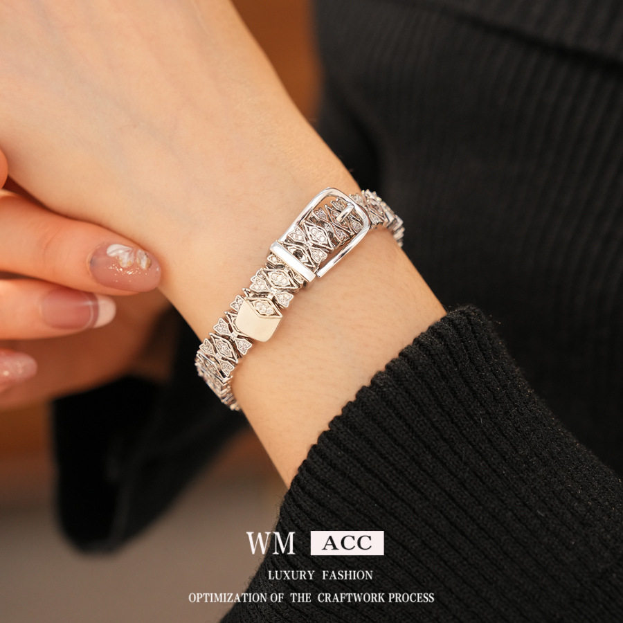 原创重工设计布契风菱形表带扣手链满钻手表链轻奢设计感手饰