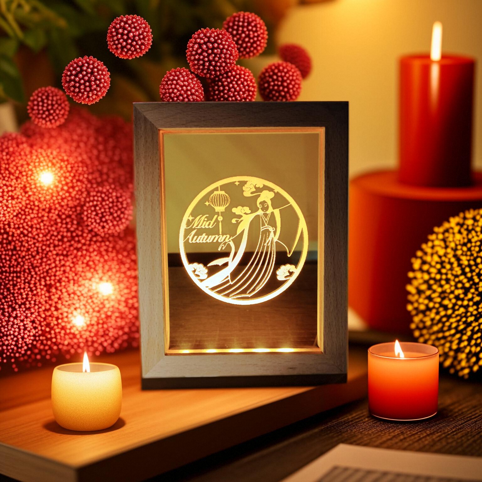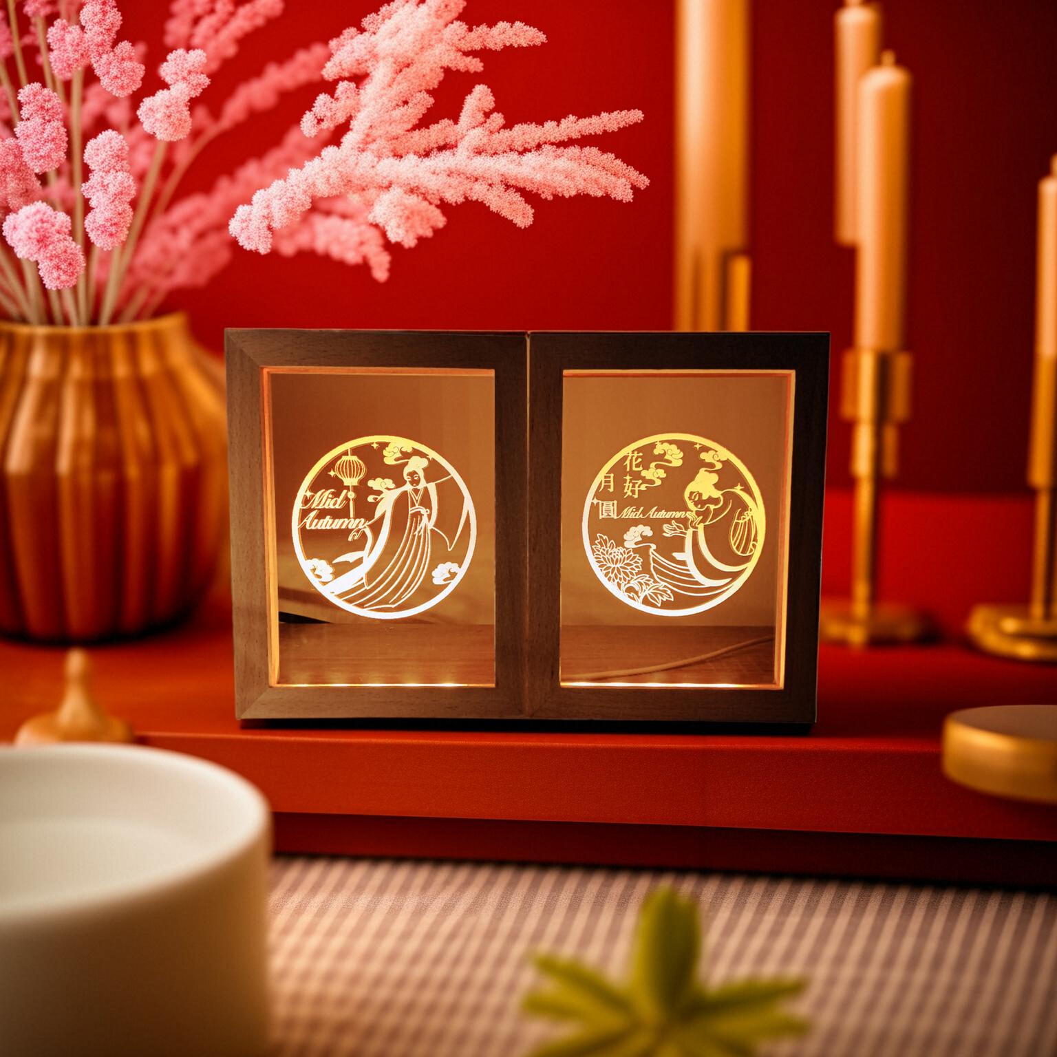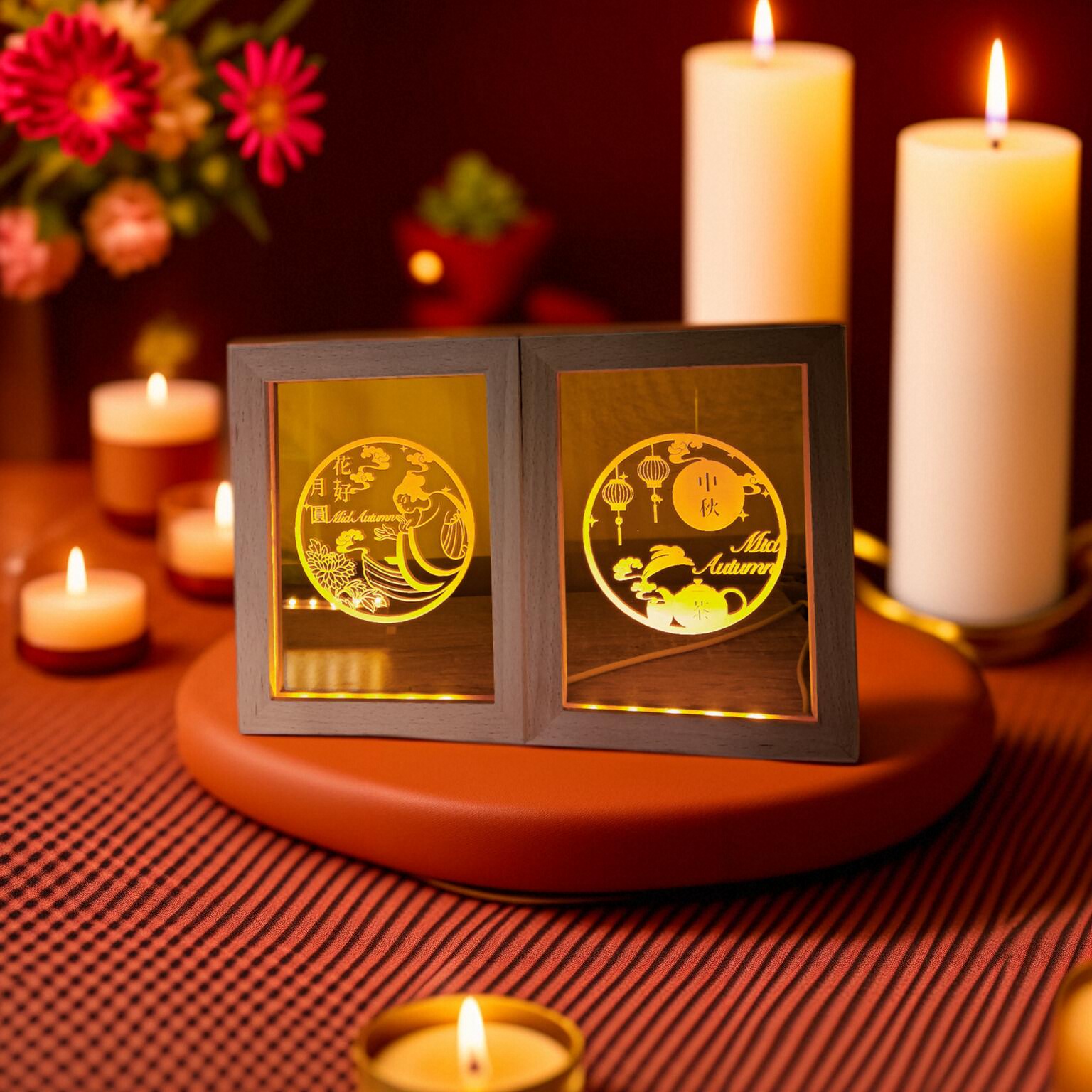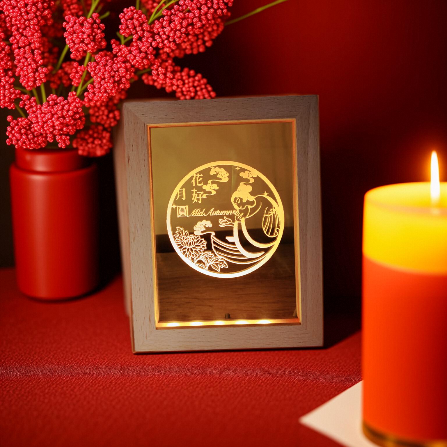 精雕USB LED实木节日氛围摆件灯七夕送礼中秋氛围灯大气暖心