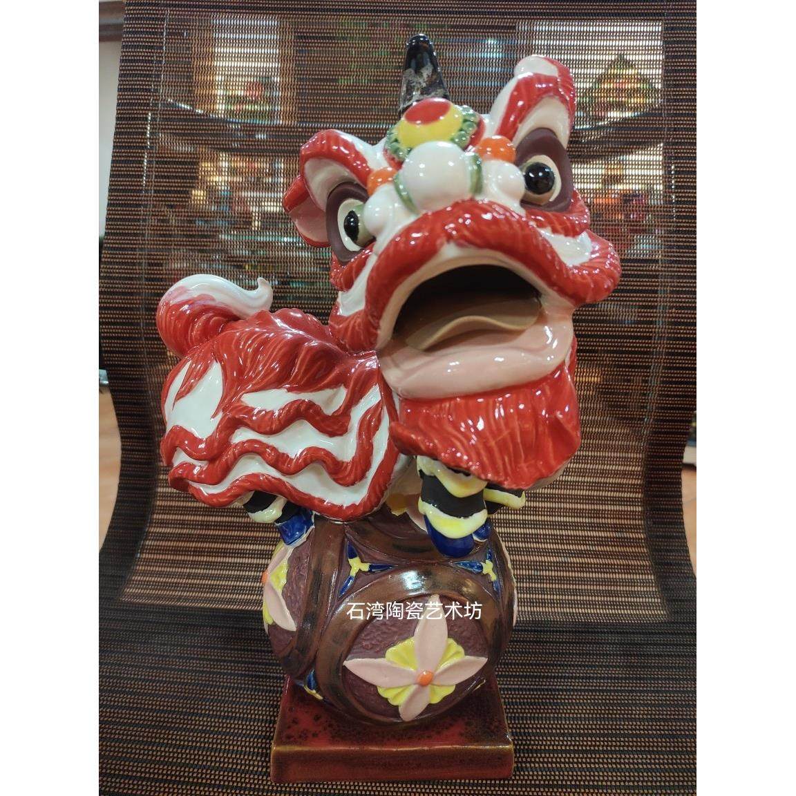陶瓷舞醒狮子特色手信开业送礼祝福婚庆石湾公仔可爱舞狮手工摆件