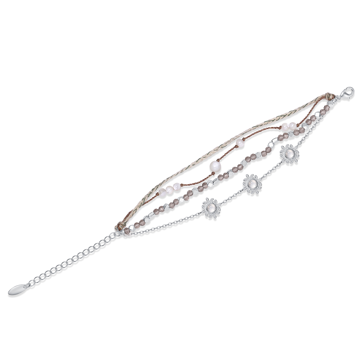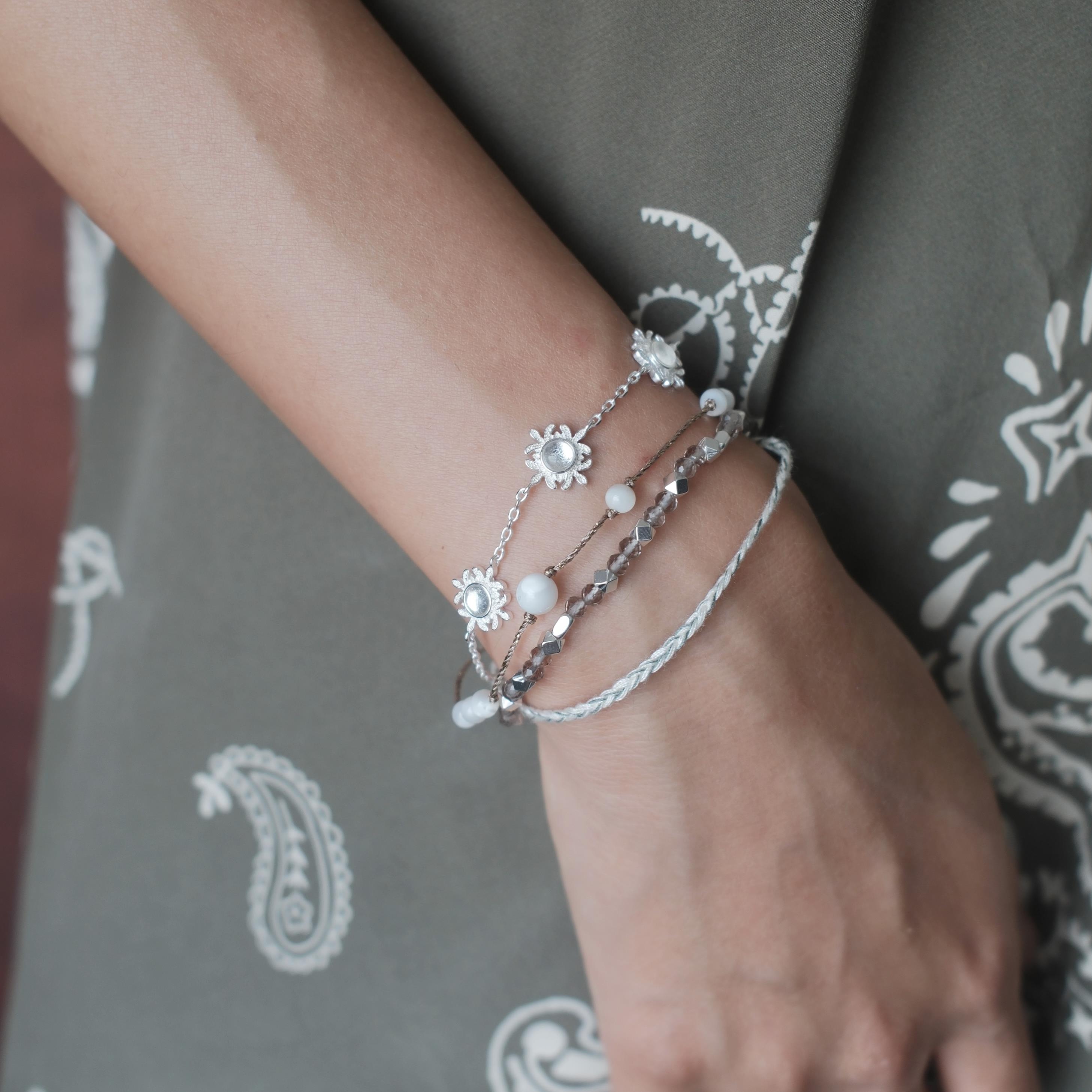 【Lunami 夜深见月】繁花胶囊系列编绳金属叠链手链 茶棕