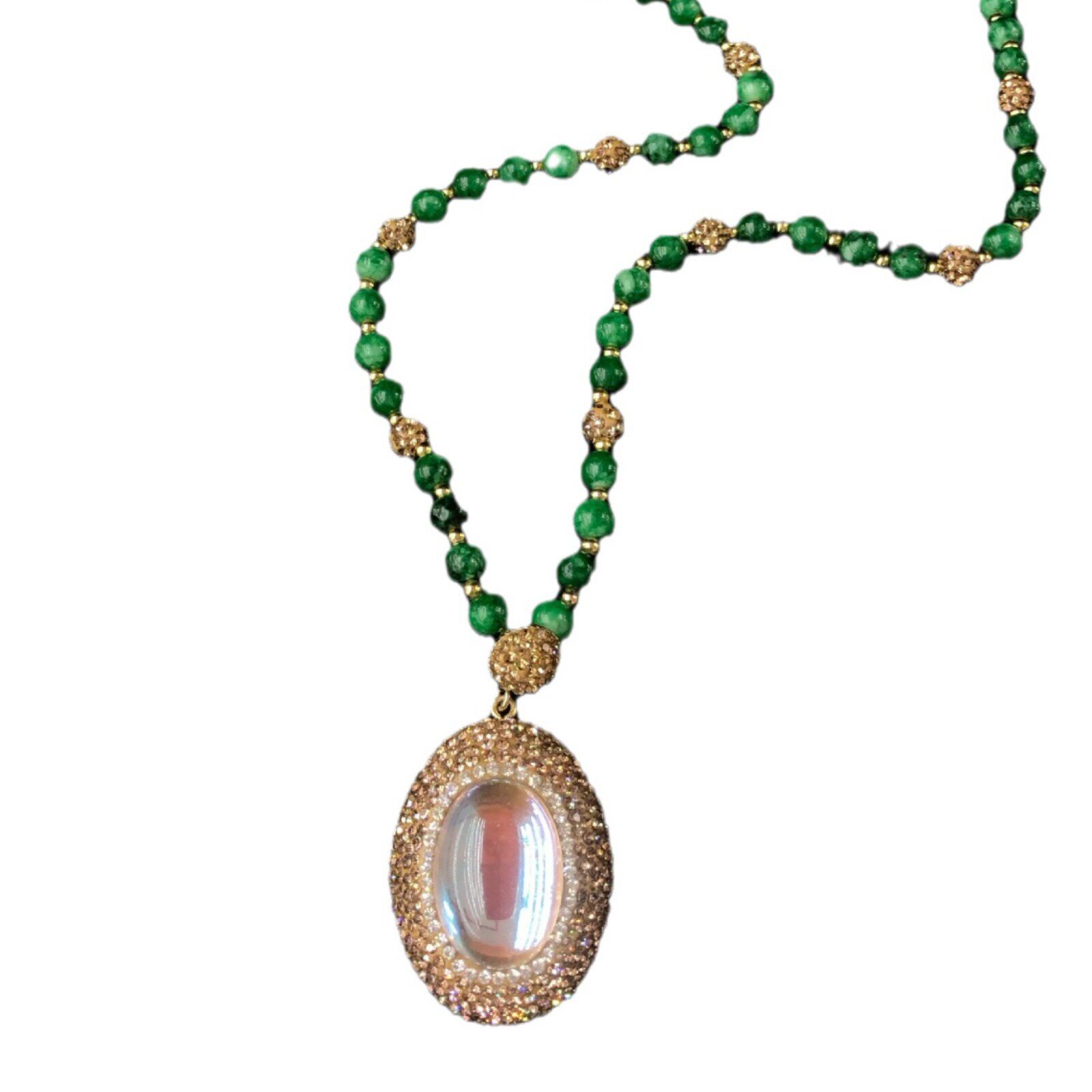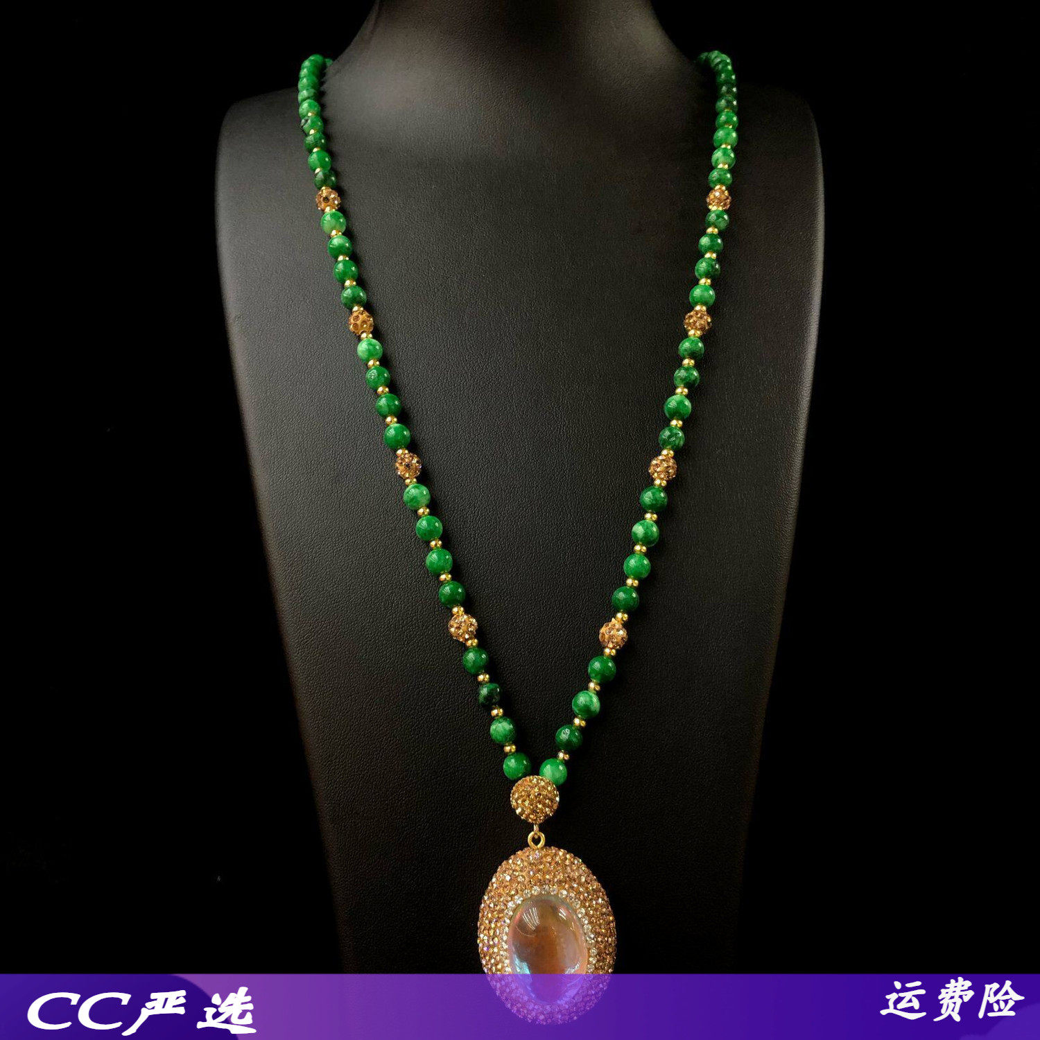 极光石吊坠干青玉髓绿色圆珠链时尚高级感气质百搭长项链厂家