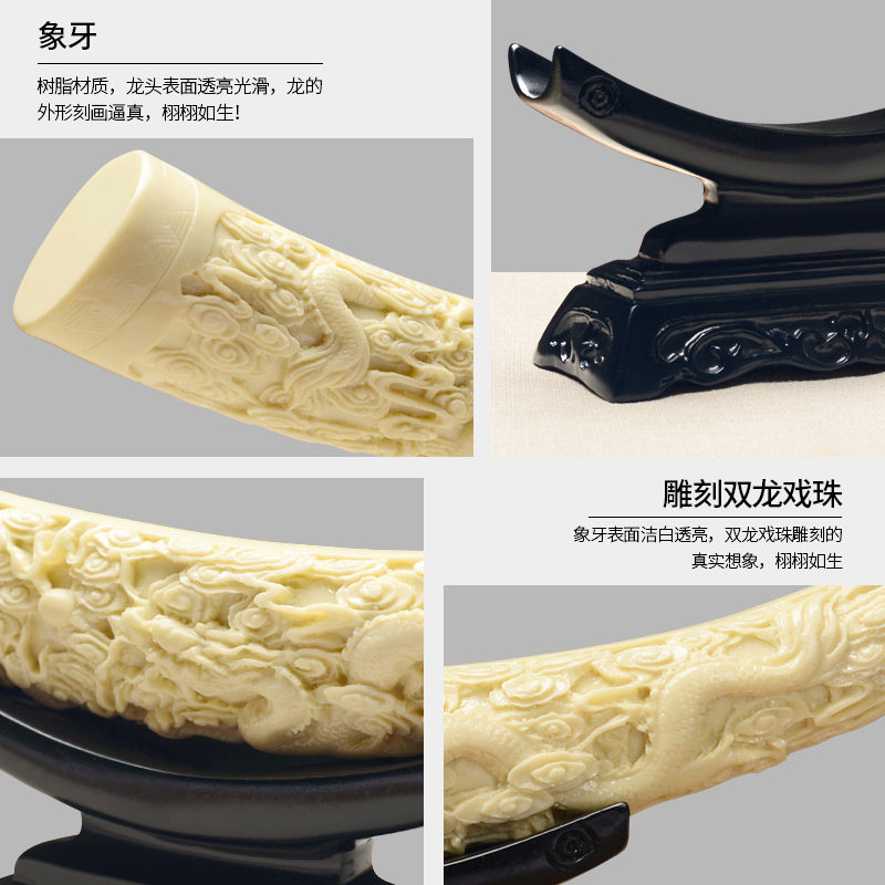仿真象牙摆件乔迁新居礼品新中式办公桌客厅装饰品电视柜玄关摆设