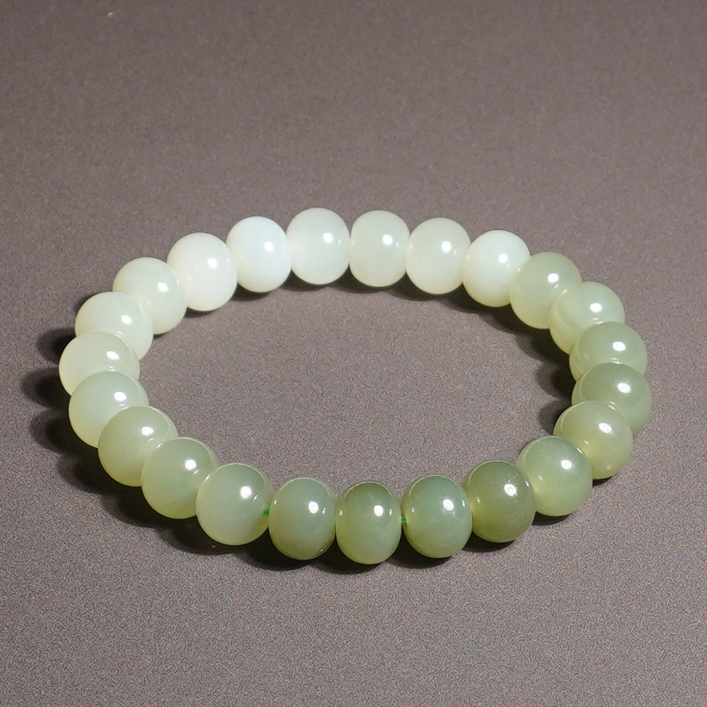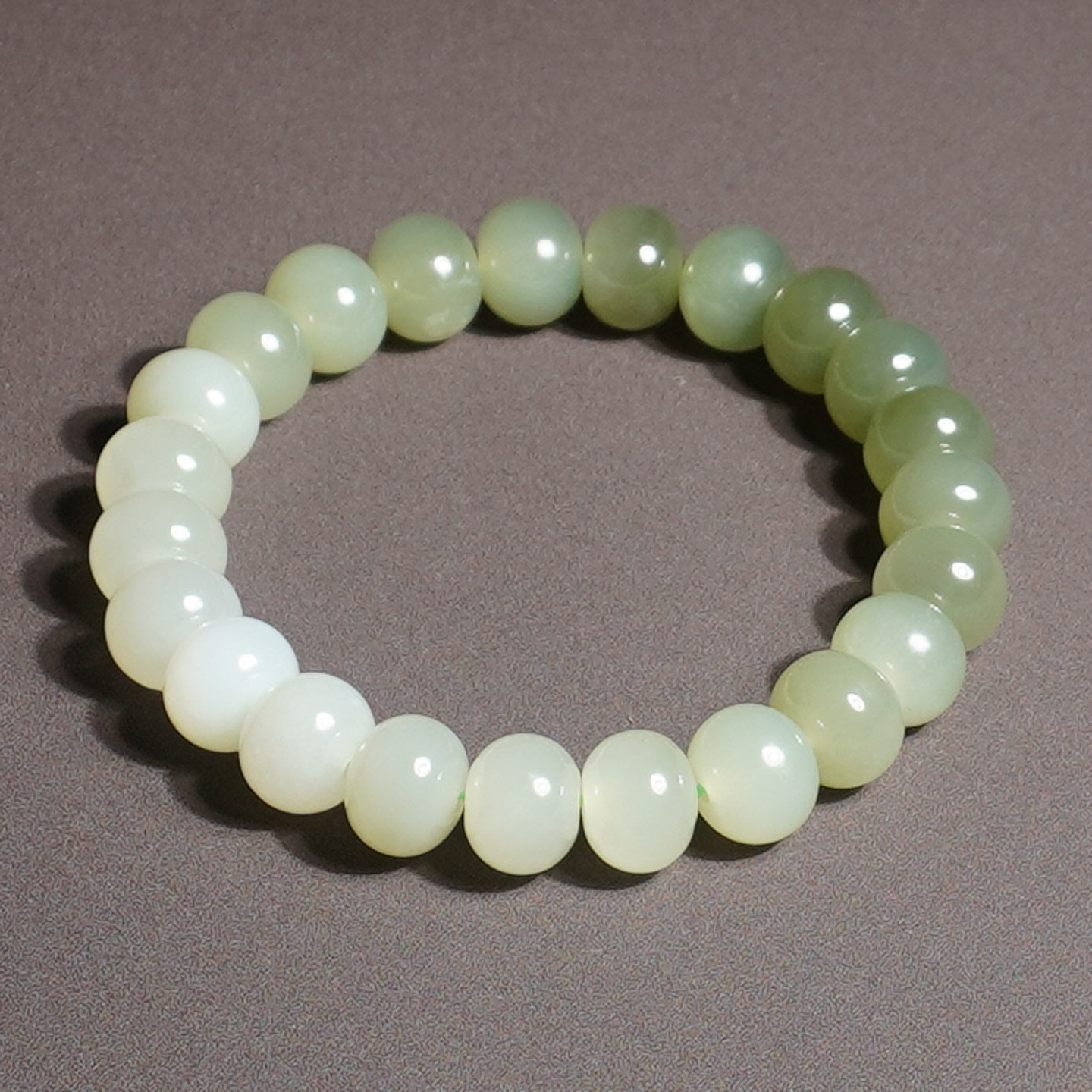 亏麻了方言和田玉青海料冰底白玉渐变湖水绿10mm算盘珠手链手串A6