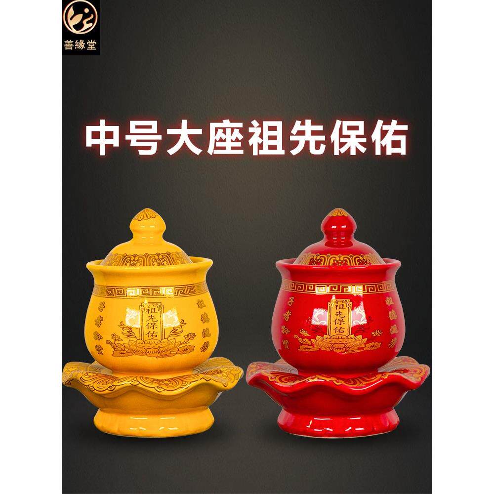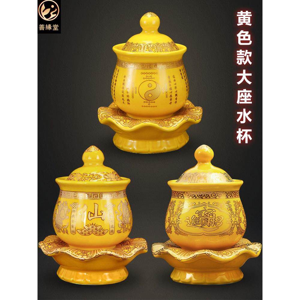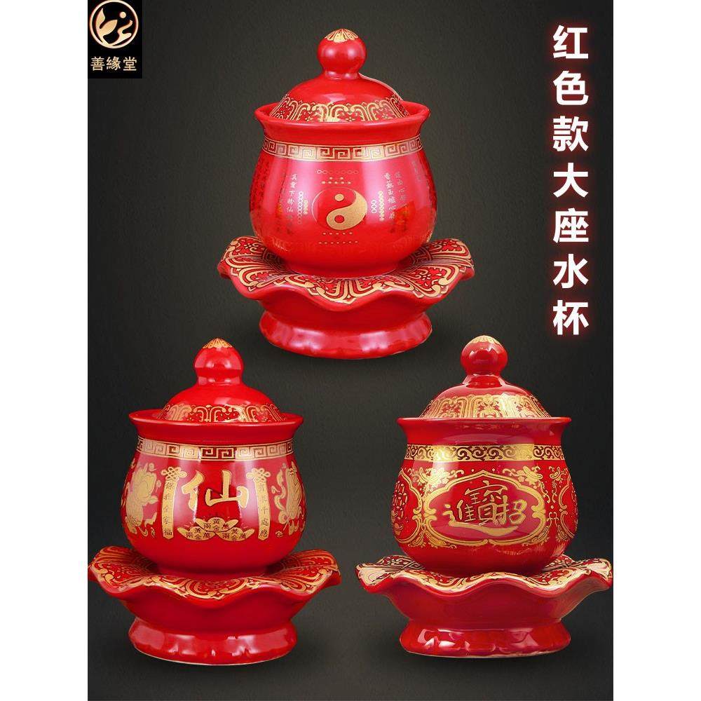 善缘堂供水杯供佛陶瓷道家供杯大悲水财神仙家家用摆件红色黄色