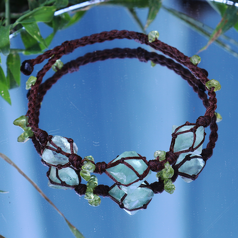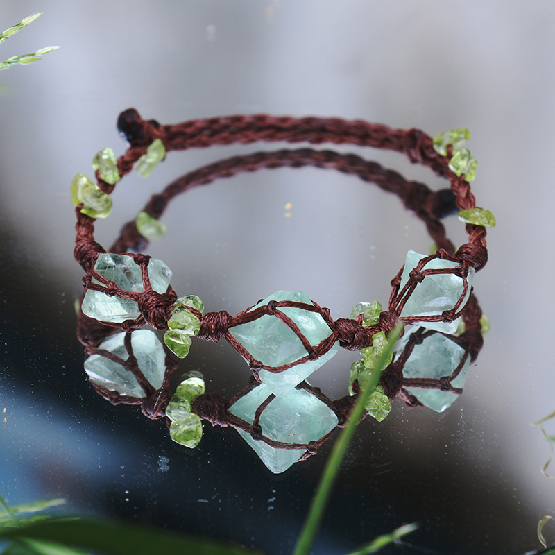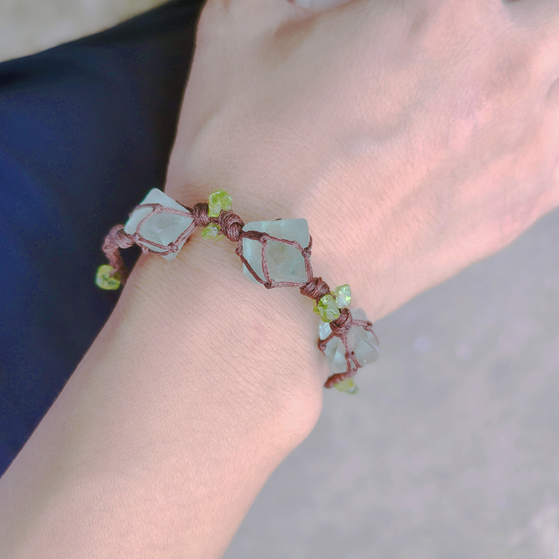 【枯木逢春】macrame手工编织水晶手链女天然绿萤石原创设计手绳