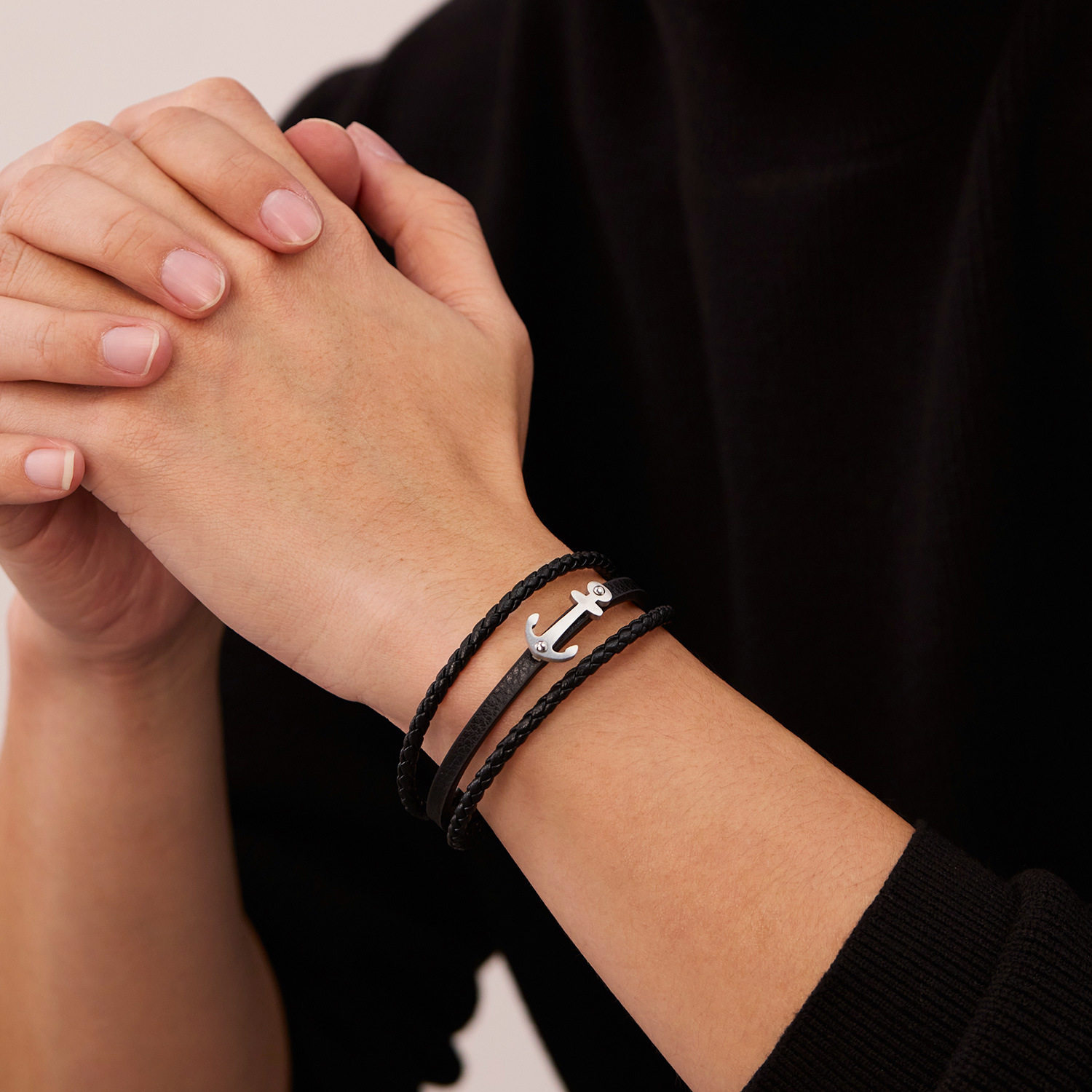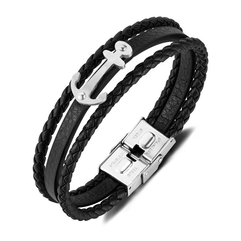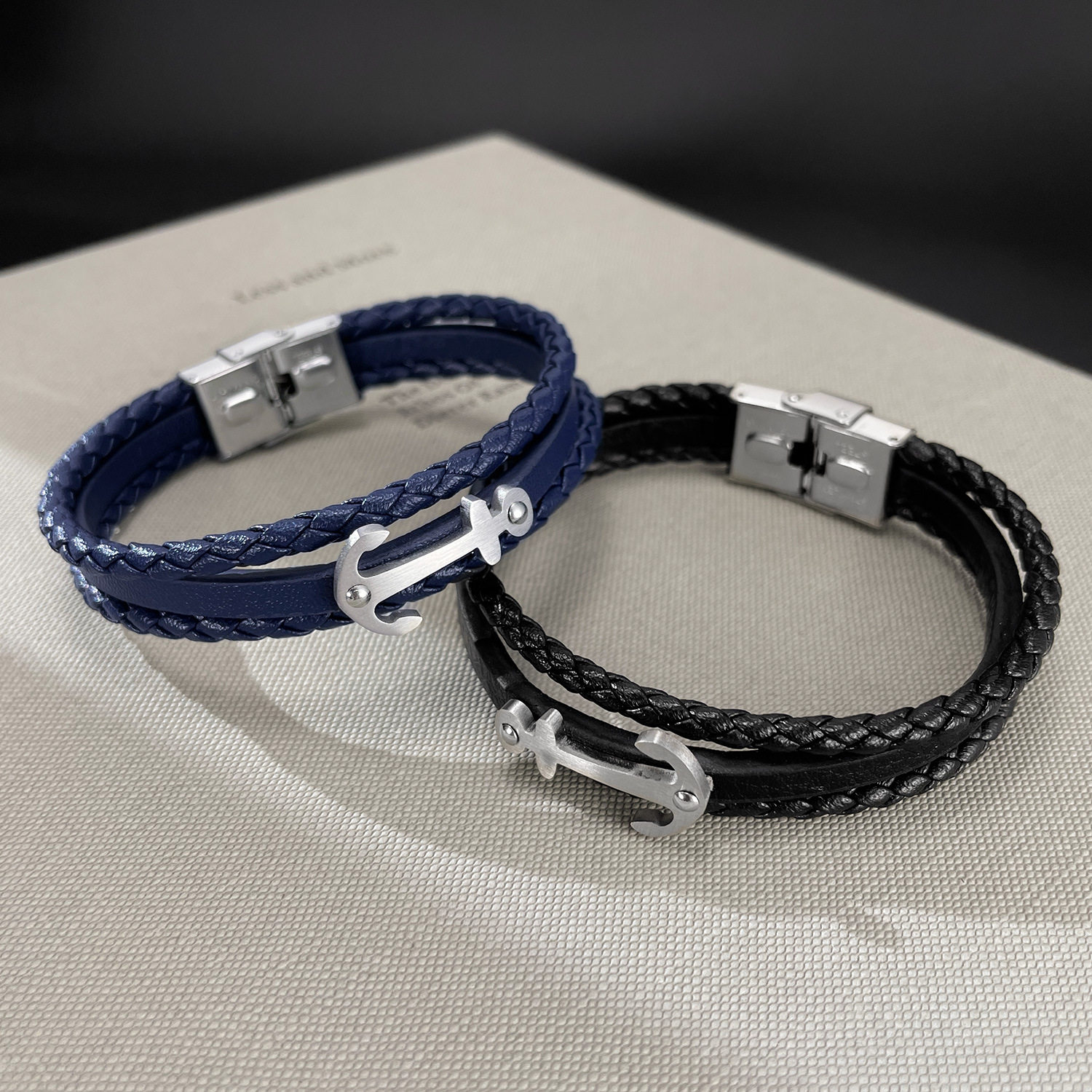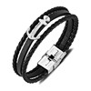 欧美跨境复古钛钢船锚朋克风皮手镯男士潮学生不锈钢多层皮革手链