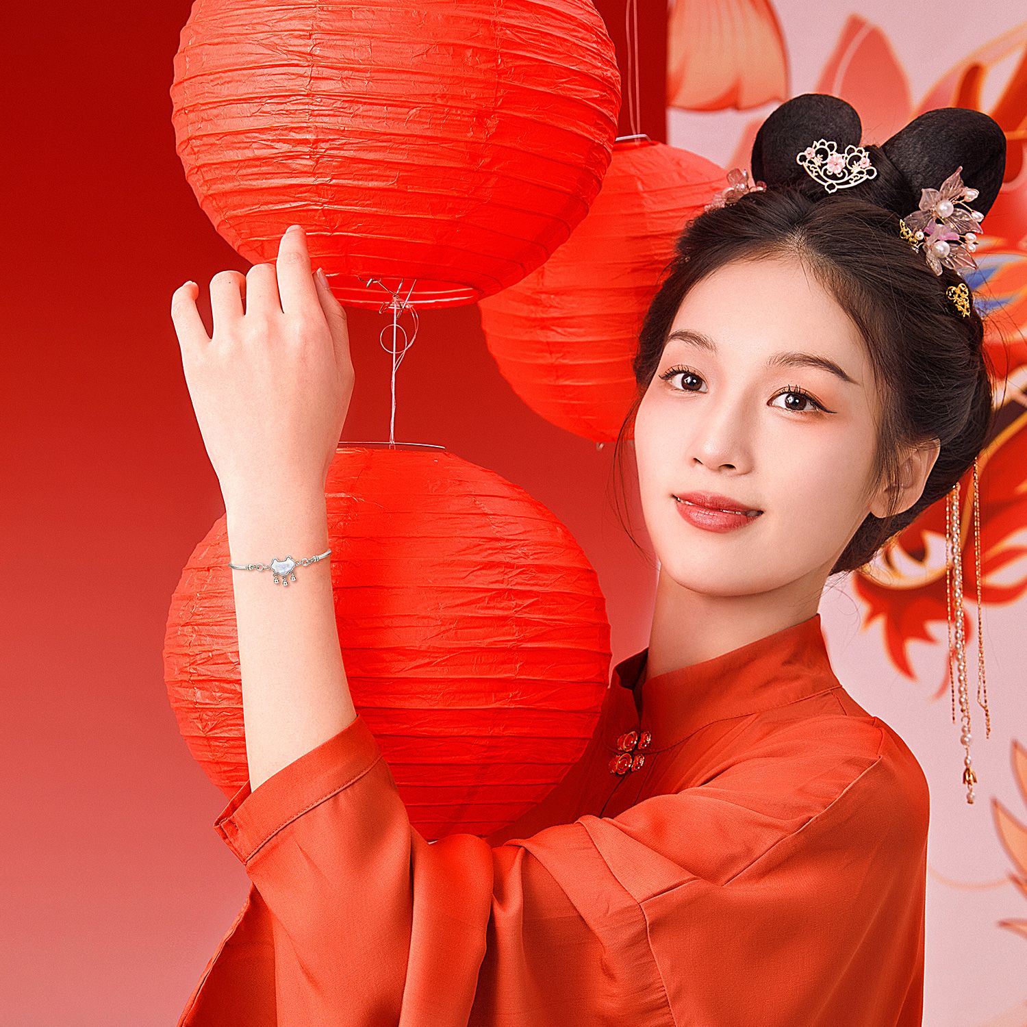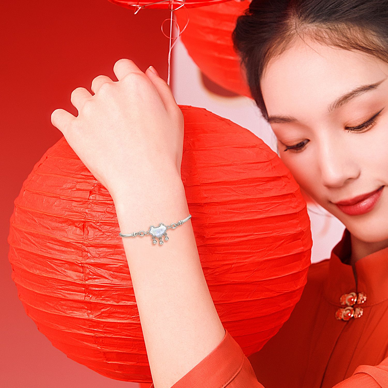 静风格STYLEJING古法银手链手镯平安锁同心锁新年送女友闺蜜礼物
